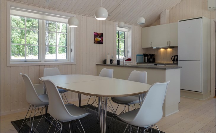 Nur ein kurzer Spaziergang trennt Sie vom schönen Sandstrand, an dem Sie viele schöne Stunden beim Schwimmen und Sandburgenbauen verbringen können. Die Gegend eignet sich bestens für lange, schöne Spaziergänge. Einige der vielen beliebten Ausflugsziele sind der Leuchtturm von Dueodde, die Rokkestenen, die charmanten Orte Snogebæk, Svaneke usw. Die Kinder werden das Krølle-Bølle-Eis lieben, das nach dem nationalen Inseltroll benannt ist.