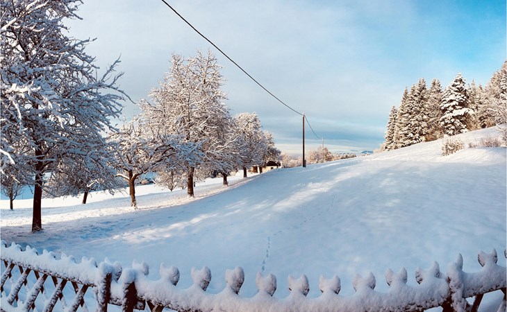 Das Ferienhaus verfügt über einen großen eingezäunten Garten, in dem Kinder und Haustiere frei spielen können. Genießen Sie die frische Bergluft bei einem Frühstück auf der Terrasse oder entspannen Sie an lauen Sommerabenden bei einem gemütlichen Grillabend.