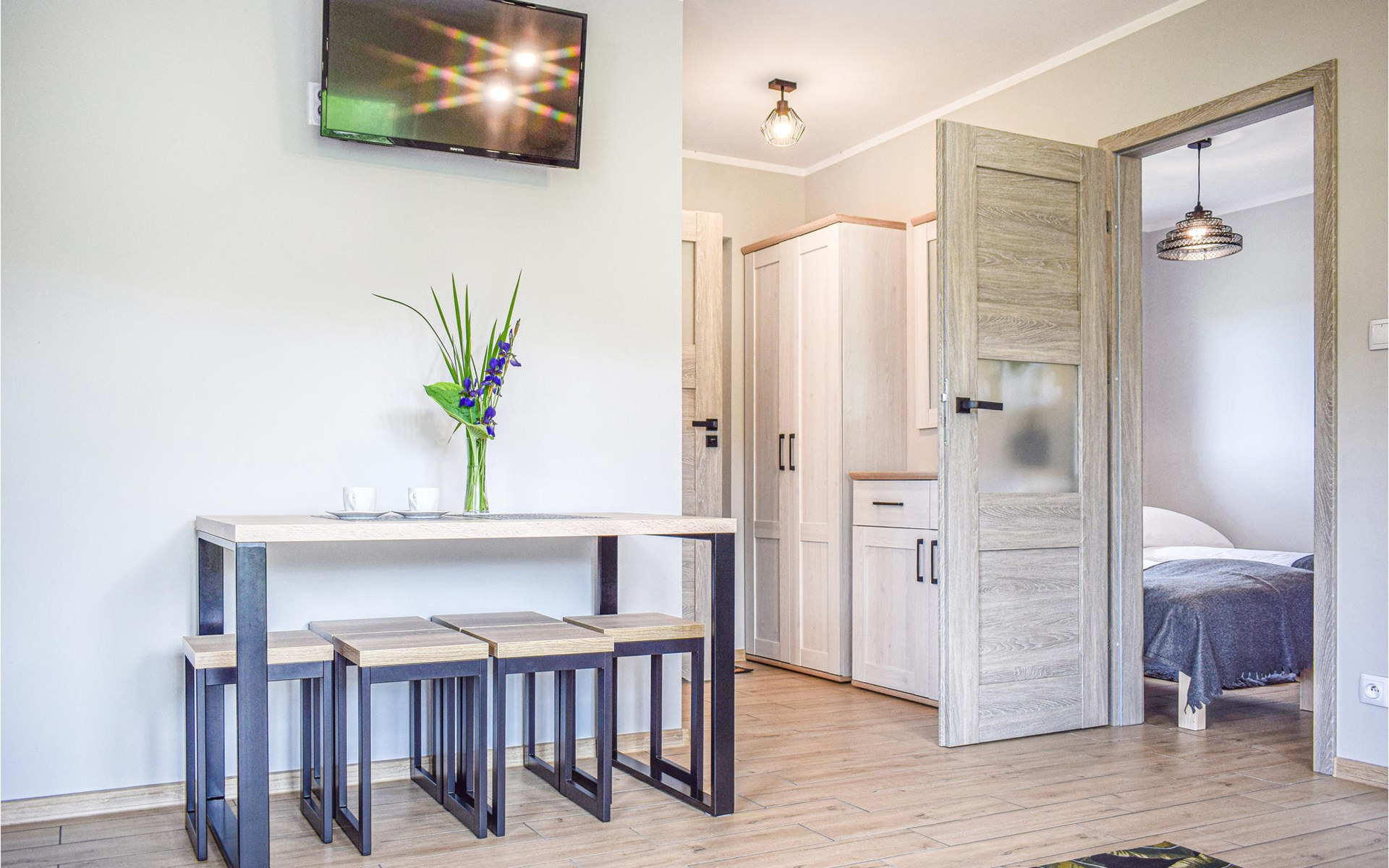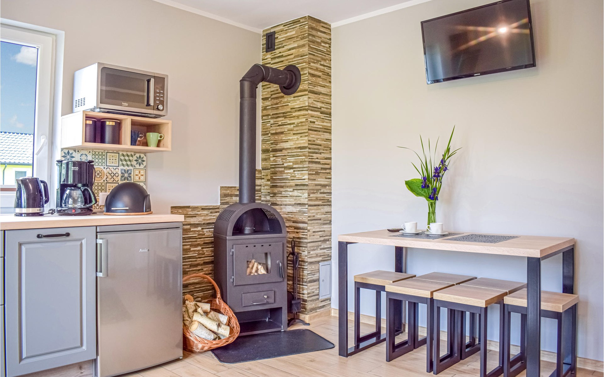 Die Anlage liegt charmant zwischen Feldern und Wäldern, abseits der belebten Straßen und gleichzeitig in der Nähe lebhafter interessanter Städte. Dąbki mit einem breiten Urlaubsangebot ist zum Beispiel so ein Ort. Hier trifft der Bukowo-See auf die Ostsee. Sowohl die Seen als auch das Meer locken mit schönen Stränden und Wasserbädern. Eine zusätzliche Attraktion dieses Ortes sind die idealen Bedingungen für Wassersportarten, z. B. Surfen - hier wehen gute Winde. Segelbegeisterte können am Seeufer segeln. Ihre Kinder können sich auf dem wunderschön eingerichteten Spielplatz amüsieren. Es gibt auch einen Gemeinschaftspool.
