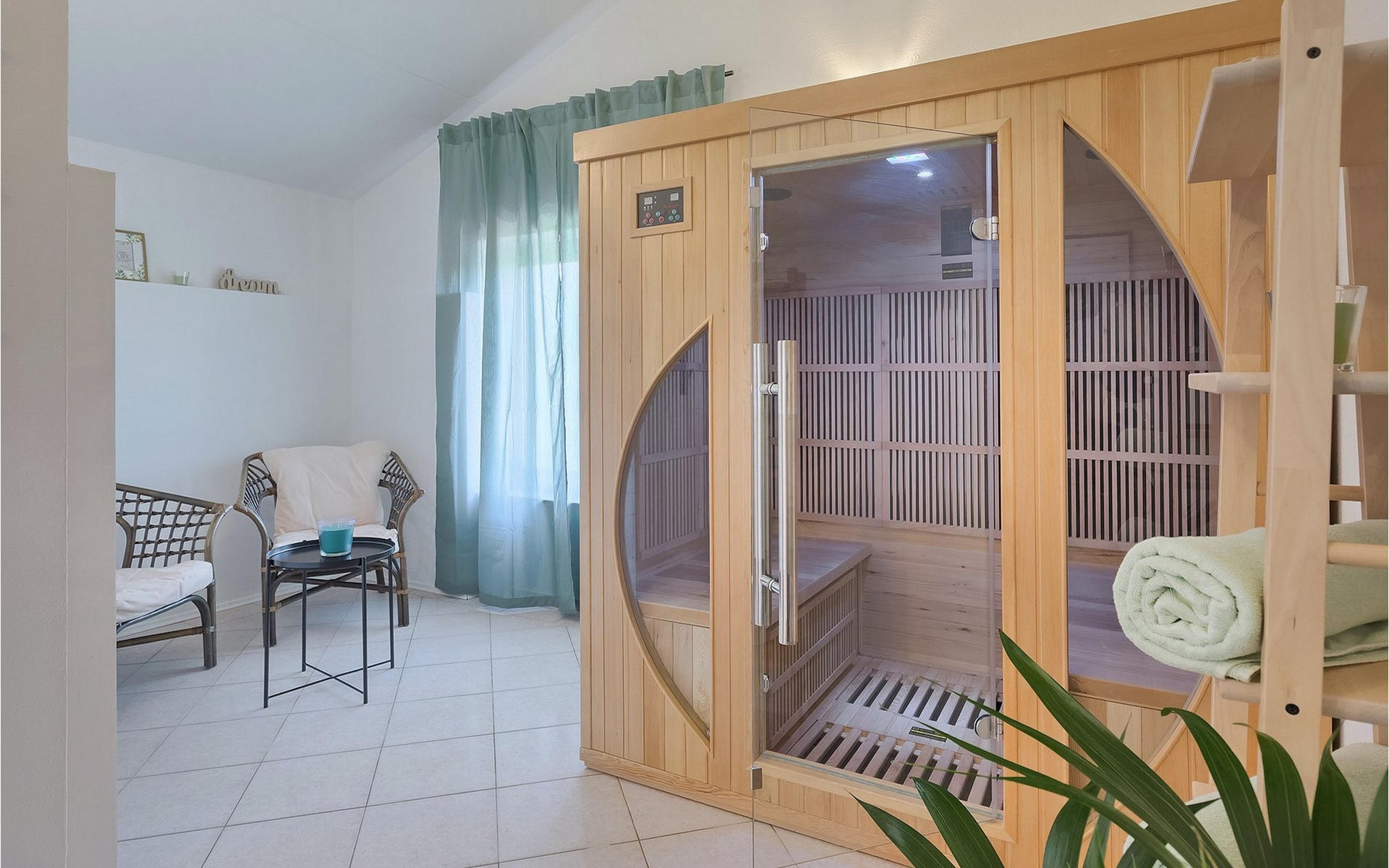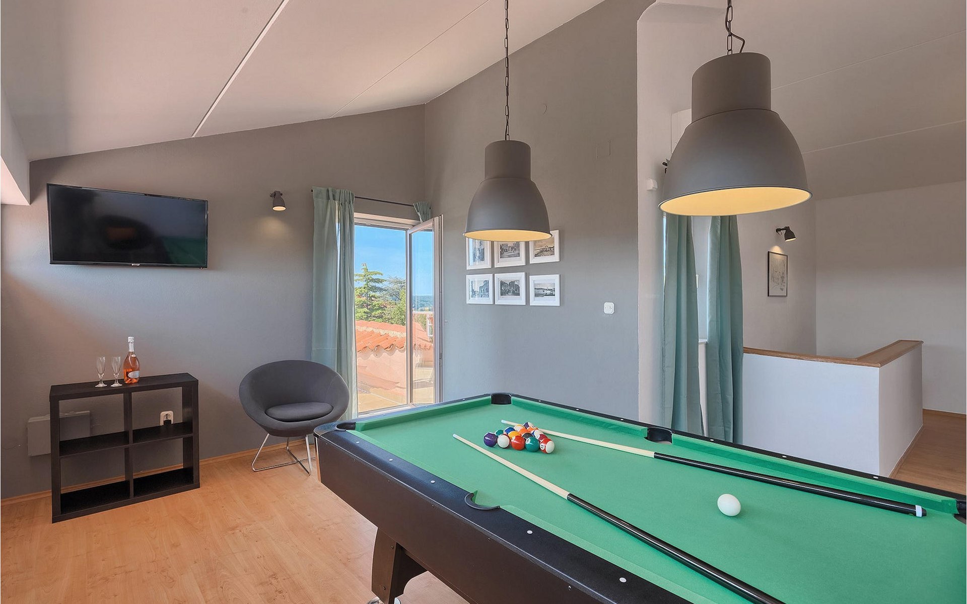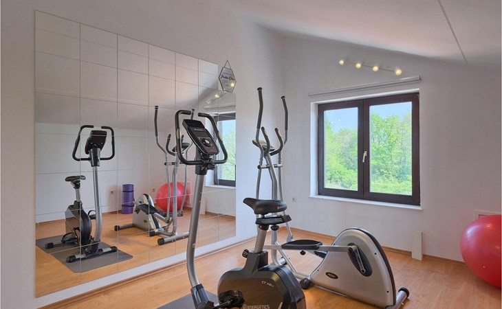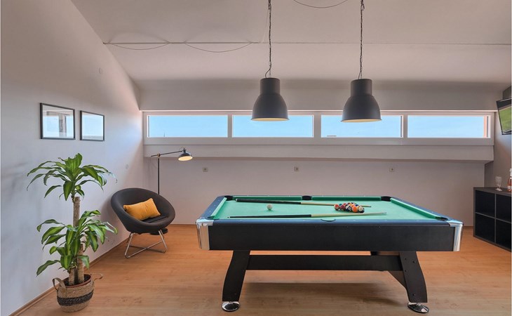 Die 2. Etage ist ausschließlich für Ihre Unterhaltung, Entspannung und Spaß gedacht :). Ob Sie die Infrarotsauna nutzen, eine Partie Billard spielen oder im Fitnessbereich trainieren - Sie haben alle Annehmlichkeiten, um Ihren Lieblingsurlaub zu wählen. Die angrenzende Terrasse bietet einen herrlichen Meerblick auf das Medulin-Archipel.