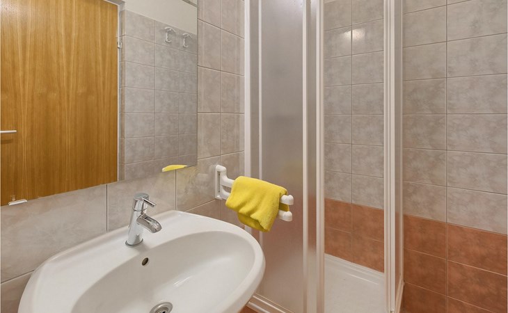 Das geräumige Erdgeschoss verfügt über einen offenen Wohn- / Esszimmerbereich, eine voll ausgestattete Küche, ein Schlafzimmer mit Doppelbett und 2 Bäder.