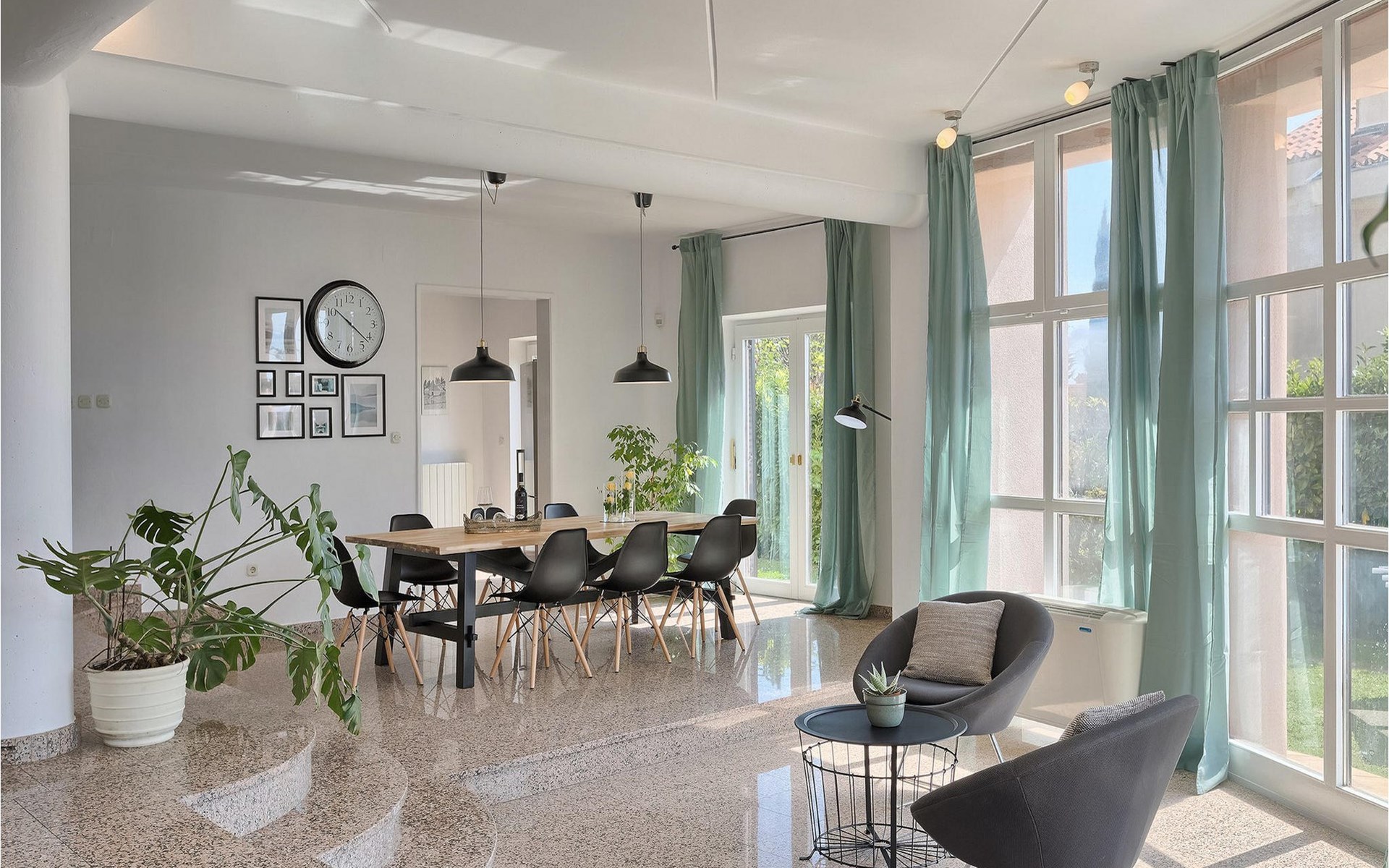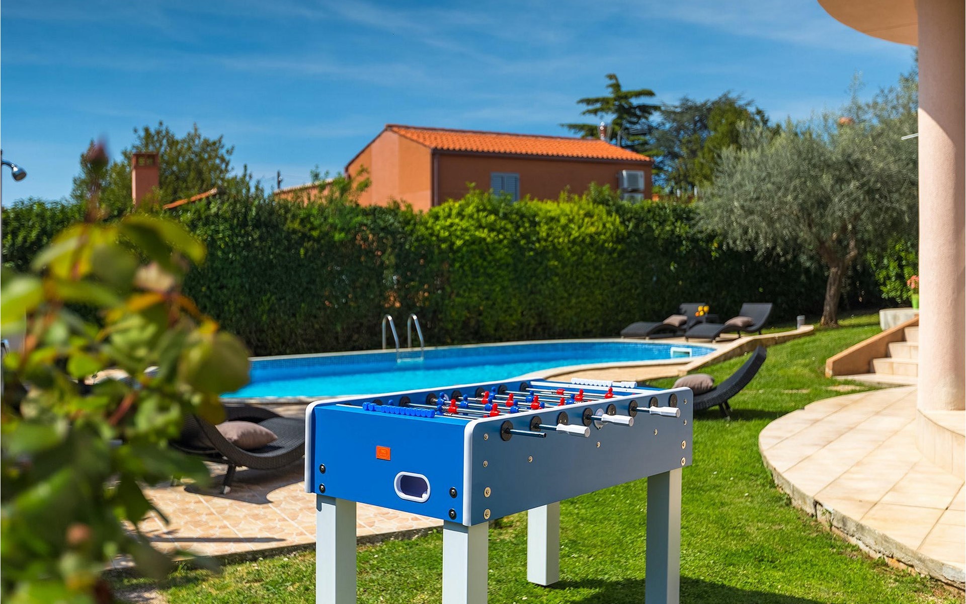 Das Erdgeschoss bietet zusätzlich einen direkten Zugang zum schönen ovalen Pool und 2 Terrassen, auf denen Sie Ihren morgendlichen Tee oder Kaffee genießen können. Auf der größeren überdachten Terrasse können Sie leckere Mahlzeiten auf dem Grill zubereiten und gemeinsame Mahlzeiten mit Familie und Freunden an entspannten warmen Sommerabenden genießen. Die Villa Mutila ist mit WLAN ausgestattet und bietet Parkplätze für bis zu 8 Autos (4 überdacht).Villa Mutila befindet sich in Medulin, früher ein kleiner Fischerort, aber heute ist die Stadt eine der bekanntesten Reiseziele Istriens, bekannt auch für seine Vielfalt an Fels-, Kies- und Sandstränden.. Unter anderem wegen der schönen Sandstränden, die für jedes Alter geeignet sind. In Medulin können Sie einen ruhigen und romantischen Urlaub verbringen, jedoch werden auch die Gäste, die gerne aktiv bleiben, hier sicherlich etwas für sich finden. Für Sportliebhaber gibt es in Medulin Fußball, Reiten, Tennis, Segeln, Minigolf, Fliegen, Bowling, Volleyball auf dem Sand, Tauchen durch die Stille der Unterwasserwelt und mehrere andere Sport- und Wassersportarten. Erkunden Sie die engen Steinstraßen der Stadt und genießen Sie ihre ersten Tasse Kaffee oder Tee in einem der zahlreichen Bars und Restaurants, wo Sie auch die bekannten Spezialitäten Istriens ausprobieren können. Nur eine kurze Fahrt entfernt ist das Kap Kamenjak, ein wunderbares Beispiel der unberührten Natur. Kristallklares Meer und Strände mit viel Naturschatten werden selbst die anspruchsvollsten Gäste in Erstaunen versetzen :)