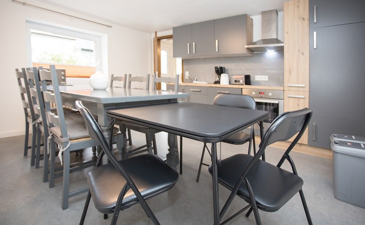 Gesellig gemeinsam Urlaub machen! Dieses Ferienhaus verfügt über 4 Schlafzimmer und vier Badezimmer mit jeweils einem WC, einer Dusche und einem Waschbecken. Außerdem sind noch drei separate WCs vorhanden. Es bietet Platz für maximal 14 Personen: 12 Erwachsene und 2 Kinder. Es stehen drei Doppelbetten, drei Zweipersonen-Schlafsofas, eine davon 140x180cm, sowie ein Etagenbett zur Verfügung. Im Wohnzimmer befindet sich ein Flatscreen-Fernseher. Darüber hinaus ist auch Wi-Fi, ein Radio, ein DVD- und ein CD-Player vorhanden. Die Küche ist mit Kombimikrowelle, Backofen, Sandwichmaker, Geschirrspüler, Kühlschrank mit Gefrierfach und einem Gefrierschrank ausgestattet. Eine Waschmaschine, ein Wäschetrockner, ein Föhn und ein Staubsauger stehen ebenfalls zur Verfügung. Außerdem sind ein Kinderhochstuhl und ein Kinderbett vorhanden. Der Garten umfasst eine Terrasse mit Gartenmöbeln, und Sie können auch den Grill benutzen. Die Unterkunft verfügt über drei Parkplätze. Im Abstellraum können Sie Fahrräder und Skier verstauen. Haustiere sind in dieser Unterkunft willkommen.