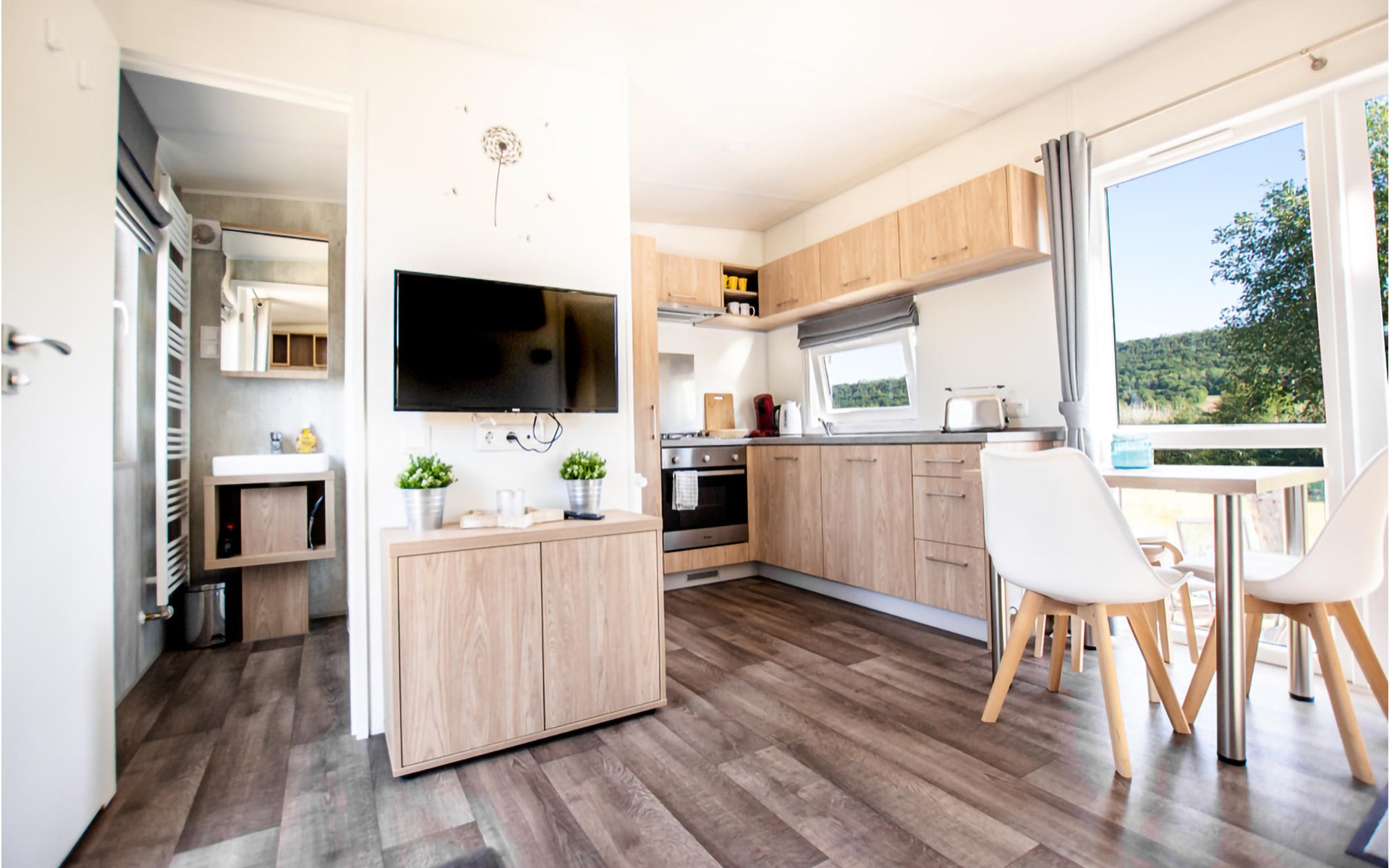 Herzlich willkommen in diesem Tiny Haus im Naturpark-Resort NATURAMA® in Beilngries, im Herzen des Altmühltals. Ihr Tiny Haus liegt direkt am Wasser mit Zugang zum Fluss direkt vor der Haustür. Es ist funktional, modern und mit hochwertigen Materialien eingerichtet. Der gemütliche Wohnbereich mit Schlafcouch, Essbereich und gut ausgestatteter Küchenzeile lädt zum Verweilen ein. Im separaten Schlafzimmer mit Doppelbett lässt es sich wunderbar schlafen und träumen. Die Schlafcouch ist 170 cm lang und daher nur für Kinder geeignet. Zusätzlich verfügt das Tiny Haus über ein eigenes Bad mit Dusche/WC.