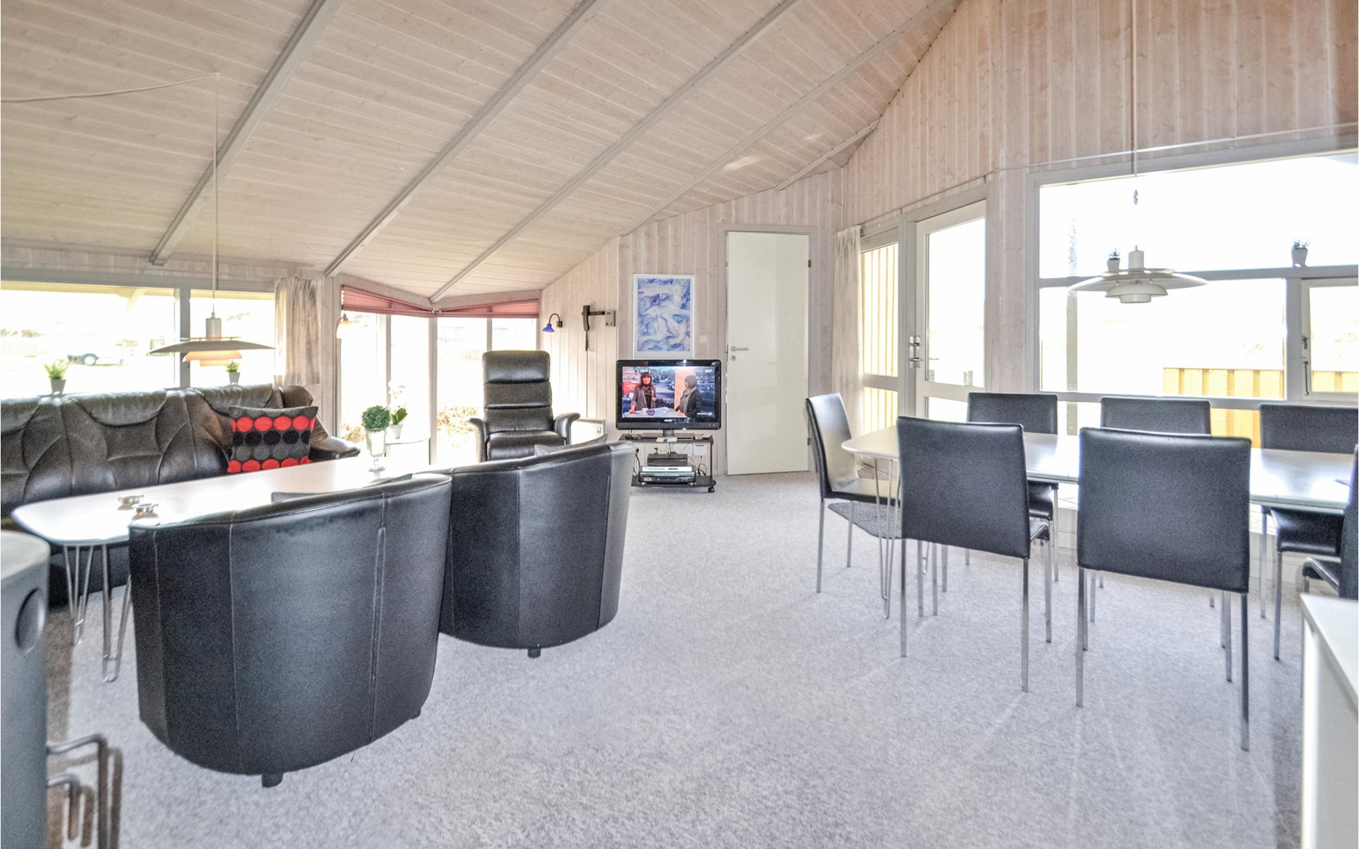 Dieses schöne Ferienhaus steht nur 100 m von der phantastischen Nordsee mit den kilometerlangen Stränden entfernt. Das Haus ist der perfekte Rahmen für einen entspannenden Urlaub. Die Terrasse liegt gegen Südwesten mit direktem Blick auf die Dünen. Nach einem guten Spaziergang am Strand empfehlen wir den Gebrauch der Wohlfühlabteilung mit Jacuzzi und Sauna. Besuchen Sie auch die belebte Fischerstadt Hvide Sande mit phantastischen Möglichkeiten des Angelns, Surfens und nicht zuletzt des Kaufs frisch gefangener Fische, wenn Sie selbst kein Anglerglück haben.