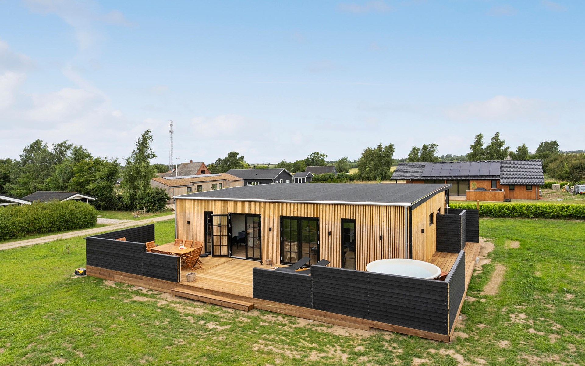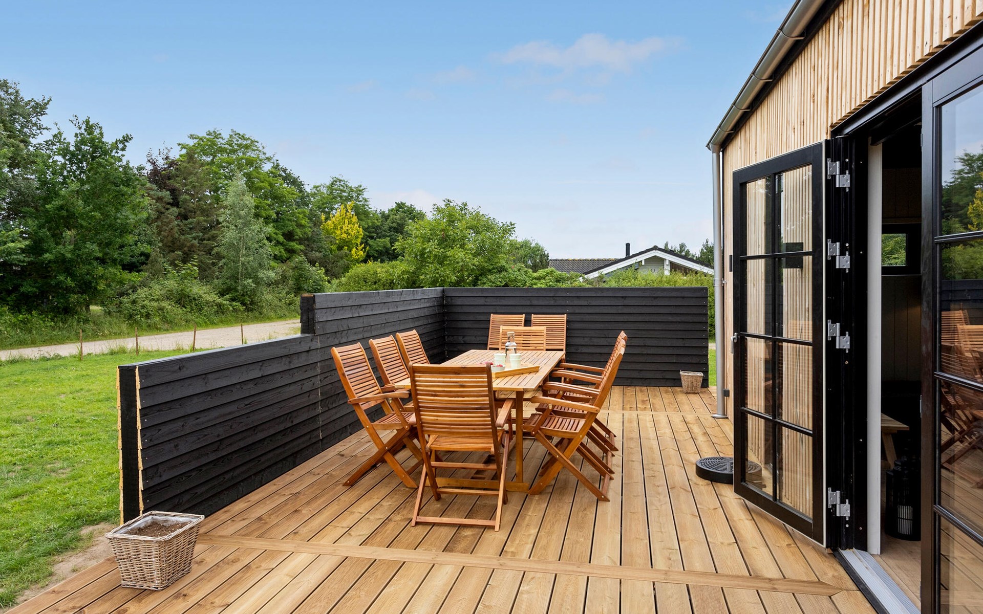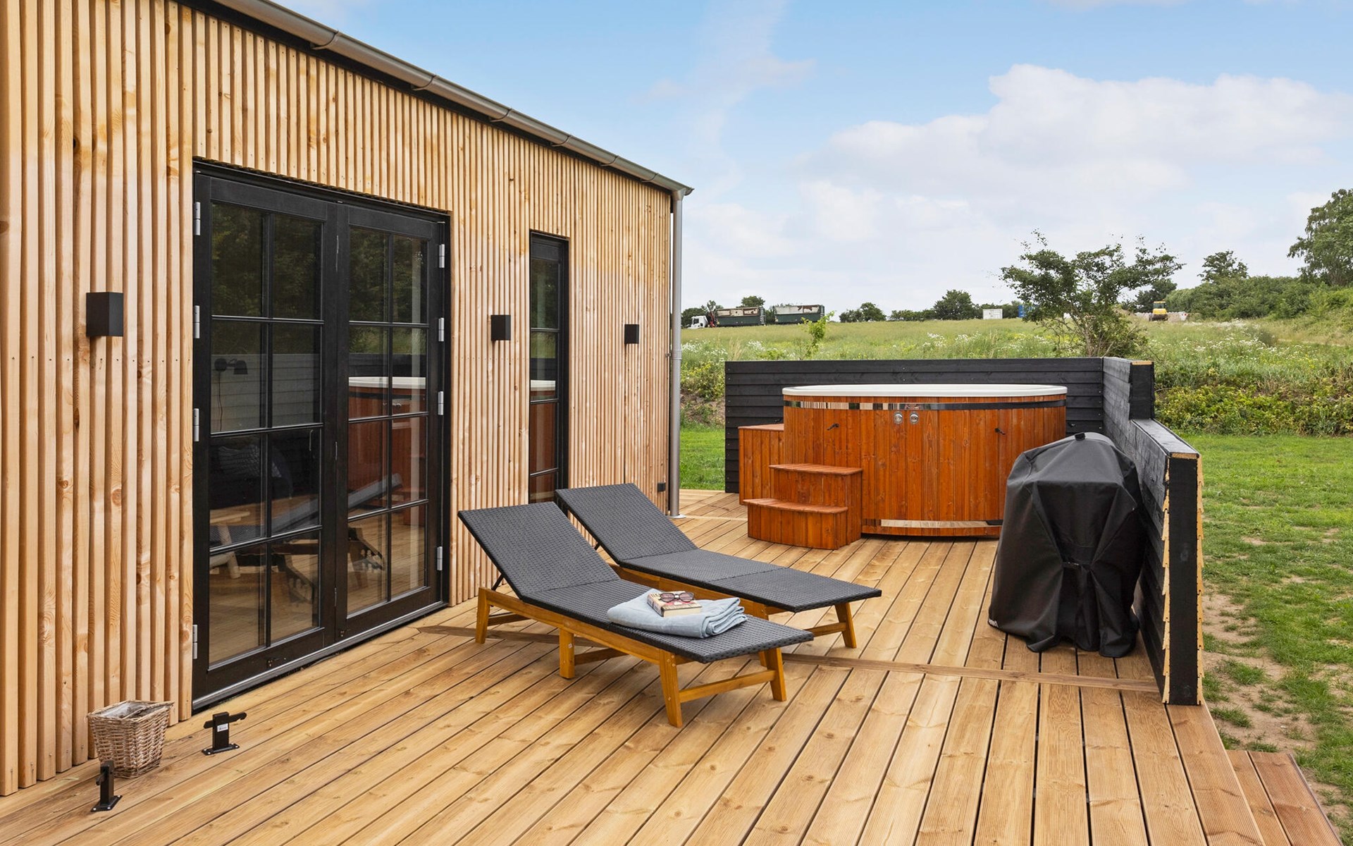 Auch die sonnige Terrasse ist wie geschaffen, um in größerer Runde entspannte Stunden unter freiem Himmel zu genießen. Lassen Sie den Kindern auf dem gepflegten Naturgrundstück freien Lauf, während Sie sich wohltuende Momente im Whirlpool genehmigen und an lauen Sommerabenden den Grill entzünden.