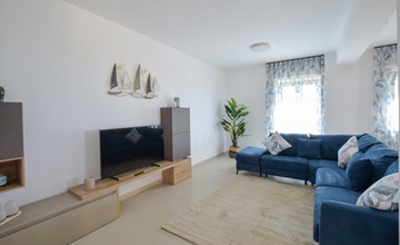 Willkommen in dem einladenden Haus, das Sie nur einen kurzen Spaziergang vom Strand empfängt und sich ideal für einen wunderbaren Urlaub nahe dem Meer eignet. Entspannen Sie nach einem erlebnisreichen Tag in den wohnlich-modernen Räumen und machen Sie es sich auf dem großzügigen Sofa bequem, wo Sie die Erlebnisse des Tages noch einmal Revue passieren lassen können.
