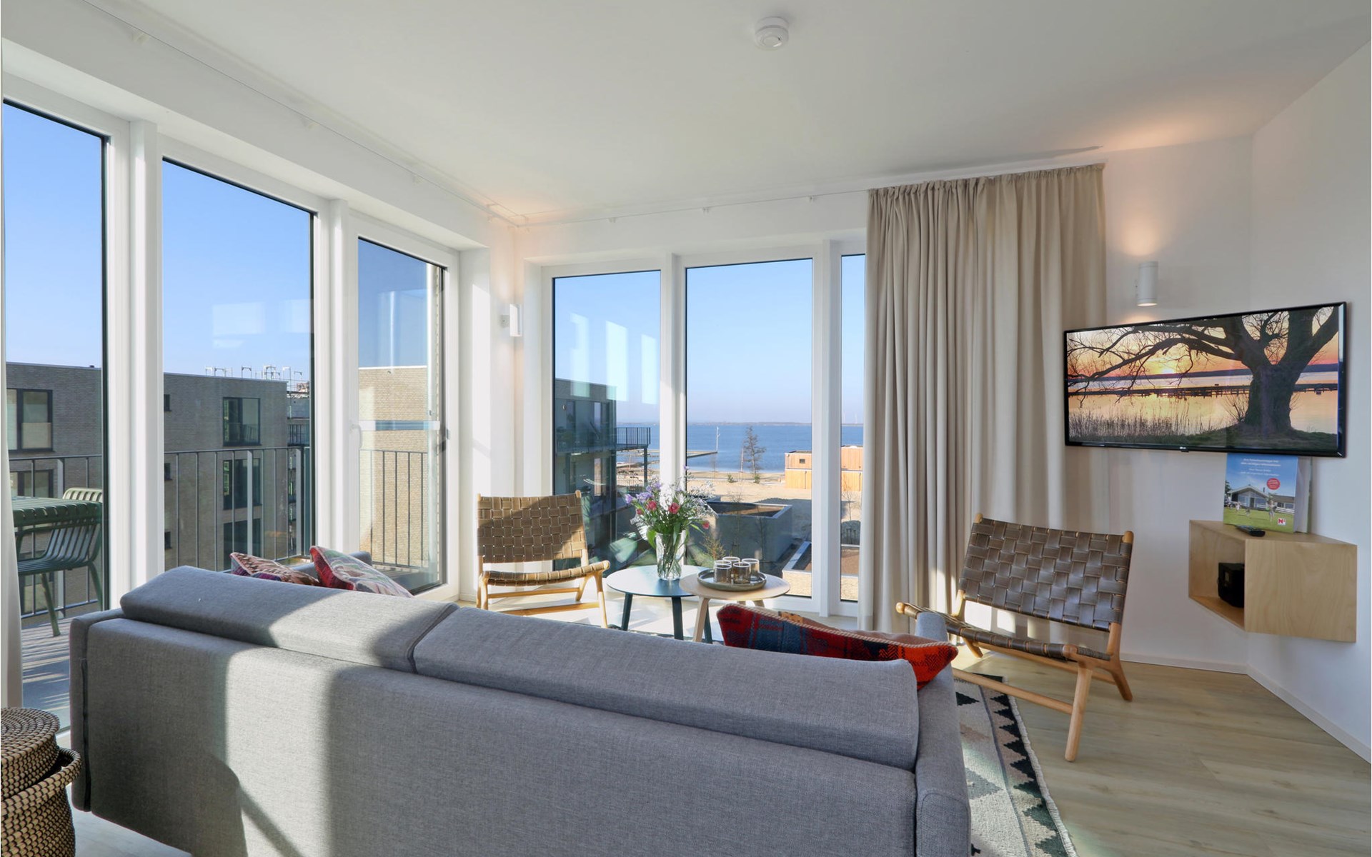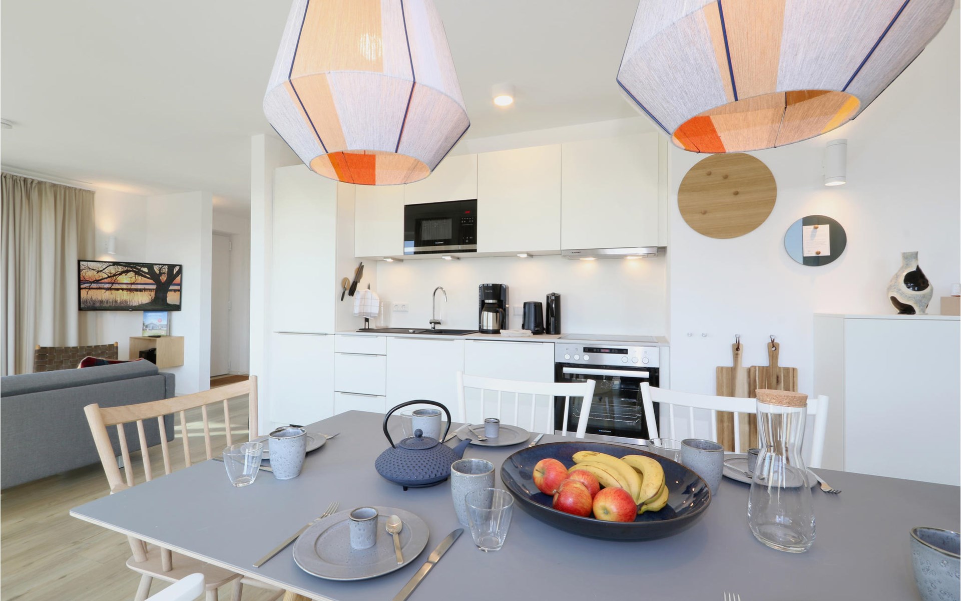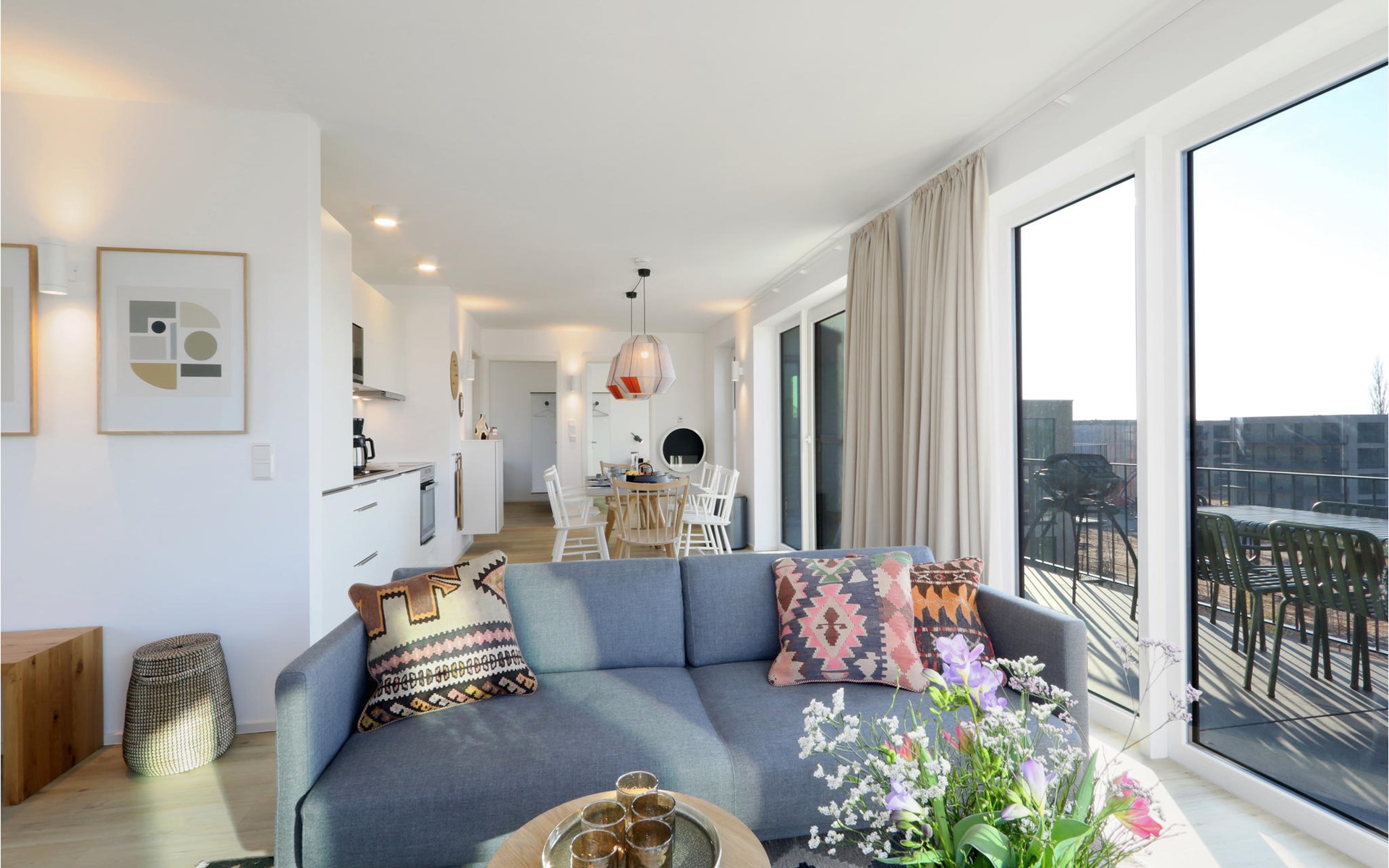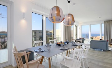 Willkommen in Ihrem exklusiven Penthouse, in dem Sie sich auf einen in allen Belangen wunderbaren Aufenthalt einstellen können. Sie werden von einem hochwertige Ausstattung, wohnlichen Ambiente und einer Einrichtung im skandinavischen Design willkommen geheißen - ein Ort, perfekt für die gehobene Auszeit. Sie finden dank dem Bio-Kamin auch an kalten Tagen eine behagliche Wärme vor, aufgrund der bodentiefen Fenster ist die Wohnung lichtdurchflutet und besonders lebenswert. Vom Balkon aus können Sie gemeinsam mit Freunden oder der Familie den Blick weit über die Landschaft schweifen lassen.