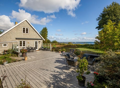 Wenn Sie den Tag auf der Terrasse mit dem Morgenkaffee beginnen, müssen Sie sich weder um Wind noch um das Wetter sorgen. Die Terrasse ist von drei Seiten überdacht und abgeschirmt. Der perfekte Ort für viele schöne Urlaubszeiten im Freien. Im Innenbereich erwarten Sie hohe Decken und ein gemütliches Loft mit Blick auf die Wohnküche.