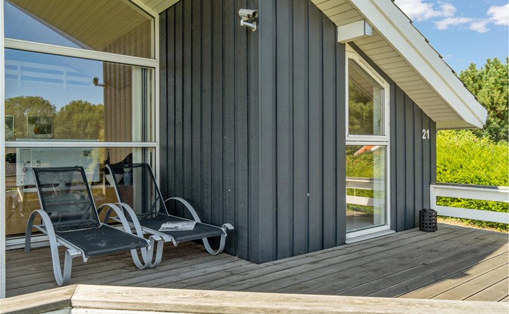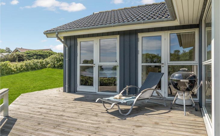 Das Ferienhaus hat mehrere schöne Terrassenbereiche sowie eine überdachte Terrasse. Es ist immer möglich, ein schönes geschütztes Plätzchen zu finden. Sowohl vom Haus als auch von der Terrasse aus hat man einen schönen Blick auf das Meer und den Kleinen Belt.