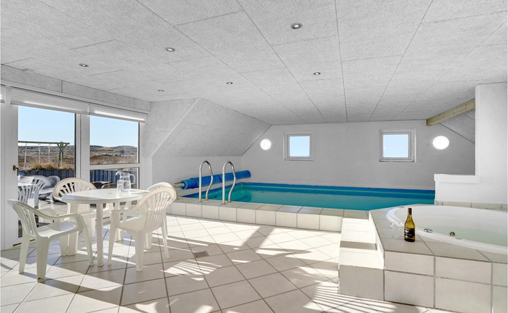 Fahren Sie mit der ganzen Familie nach Dänemark, wo dieses interessante Ferienhaus südlich von Søndervig auf Sie wartet. Das großzügige Haus bietet einen großen Schwimmbereich. Mit seiner geschmackvollen Einrichtung und ausgezeichneten Ausstattung ist das Ferienhaus ideal für einen Aufenthalt mit der Großfamilie geeignet. Von der Unterkunft aus haben Sie einen atemberaubenden Blick über die Heidelandschaft und die Dünen der Nordseeküste. Die einladende Ausstattung des Hauses, einschließlich eines Whirlpools und einer Sauna, bietet den idealen Rahmen für einen erholsamen Start in Ihren Urlaub.