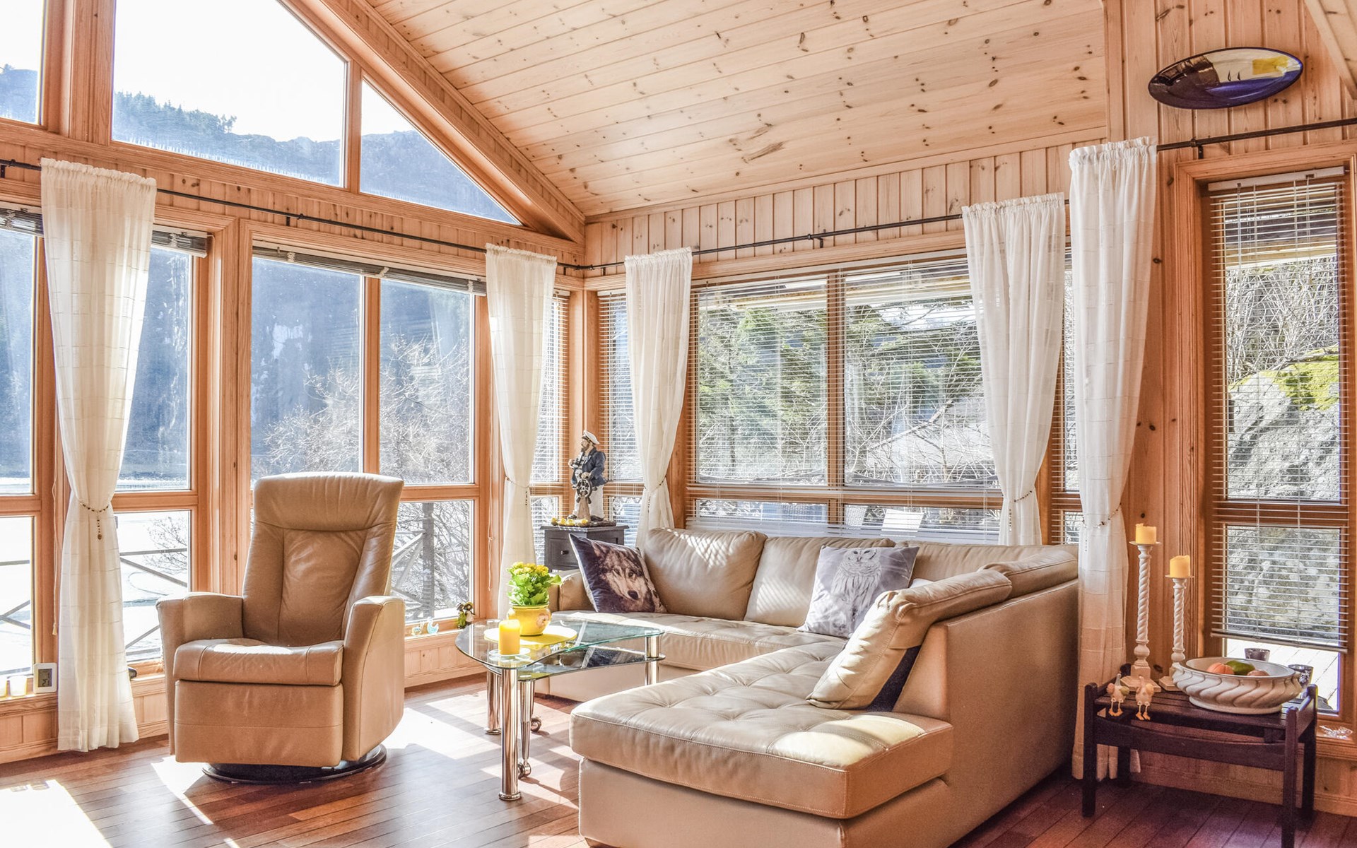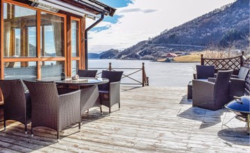 Freuen Sie sich auf dieses helle und schöne Ferienhaus mit großen Terrassenbereich direkt am Ufer des Fjords.