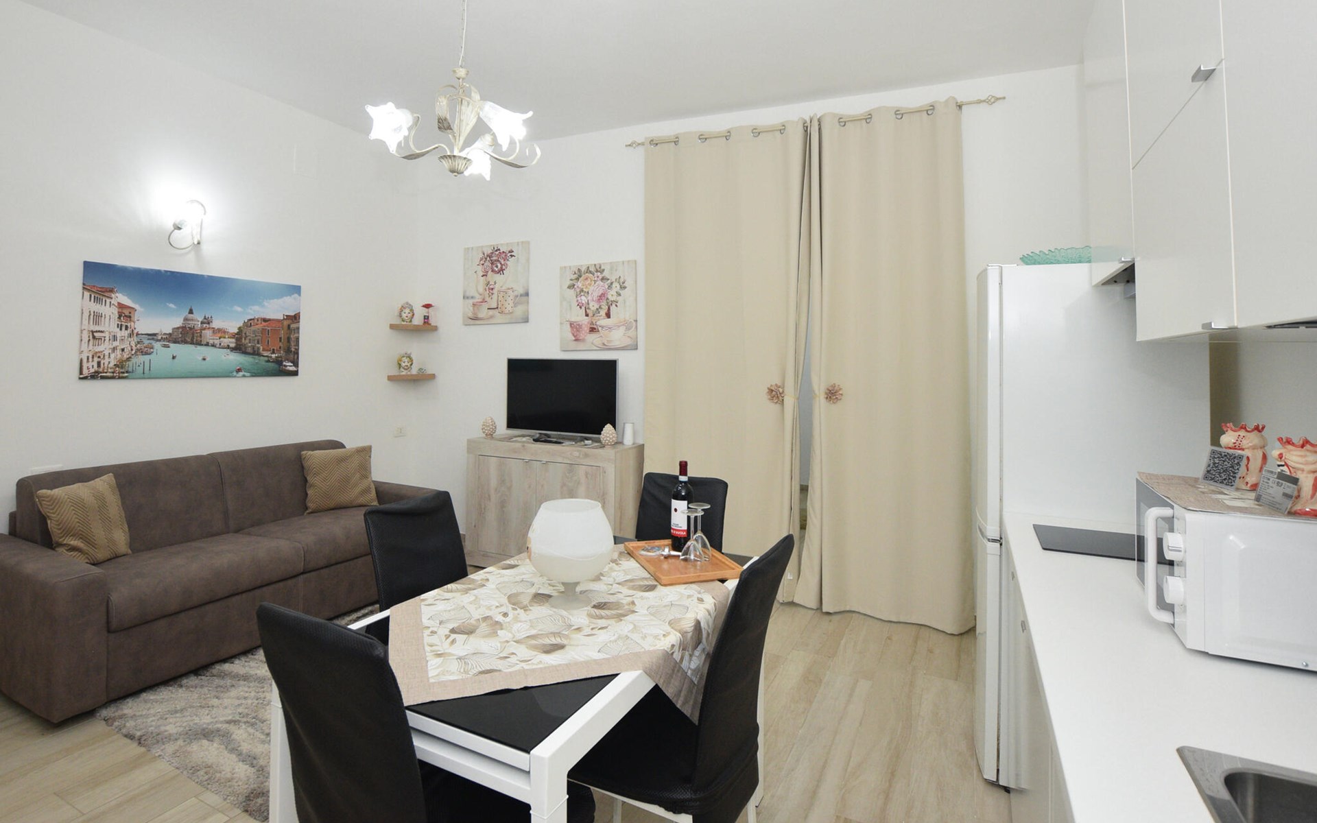 In Syrakus finden Sie Ihr Ferienhaus für Ihren nächsten Sizilien-Urlaub. Treten Sie ein in das Wohnzimmer, das mit seiner geschmackvollen Dekoration und dem bequemen Sofa eine einladende Atmosphäre schafft. Entspannen Sie hier nach einem aufregenden Tag und lassen Sie die Seele baumeln. Nutzen Sie die Küche, um ein köstliches Frühstück oder Snacks für unterwegs zu zaubern, und genießen Sie Ihre Mahlzeiten am Esstisch, dem idealen Ort für gesellige Stunden.