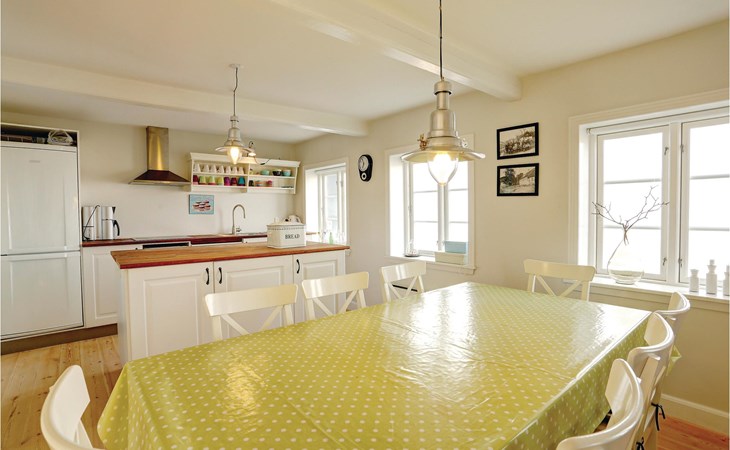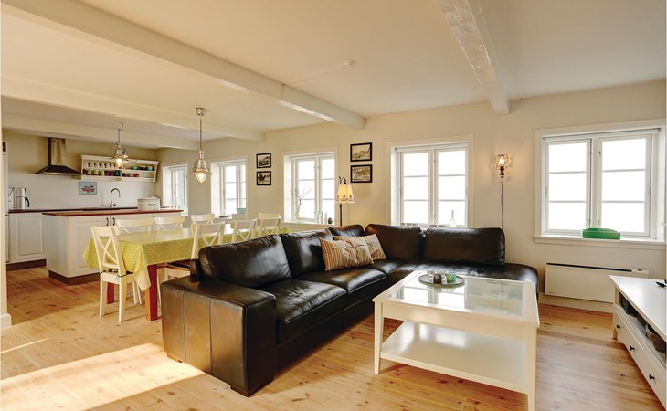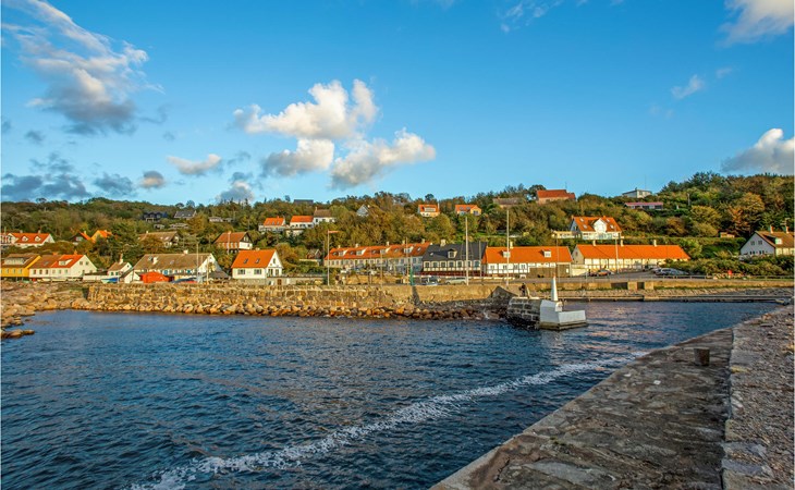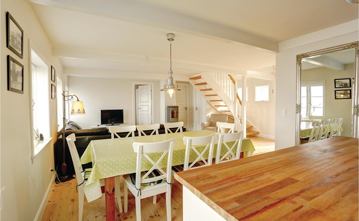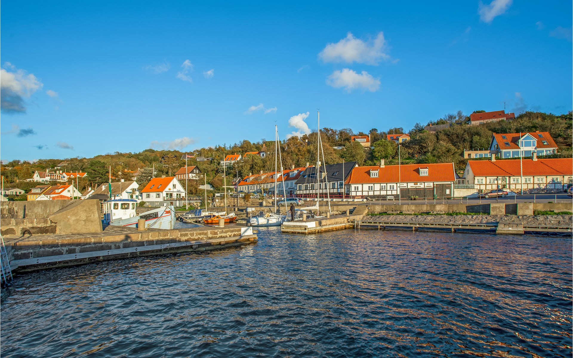 Schön gelegenes und total renoviertes Reihenhaus auf 2 Ebenen. Schöne Aussicht und Einrichtung. Das Haus ist sehr geräumig und gemütlich und die sichtbaren Deckenbalken verleihen ihm einen besonderen Reiz. Die große Wohnküche ist modern eingerichtet. Vom Wohnzimmer haben Sie eine Aussicht auf die Ostsee und den Hafen Vang, wo viele kleine Boote am Kai liegen. Vom Treppenabsatz im 1. Stock können Sie auch die Ostsee sehen. Hier sind Sie in einem schönen Reihenhaus in einer maritimen Umgebung und wo der hohe Komfort Ihnen ein einzigartiges Urlaubserlebnis beschert. Zum Haus gehört auch eine Steinterrasse, die in einem welligen Terrain angebracht ist. In Vang können Sie gut spazieren, die Nähe zum Meer tut Körper und Seele gut. Ein großes und gemütliches Ferienhaus für jede Jahreszeit.