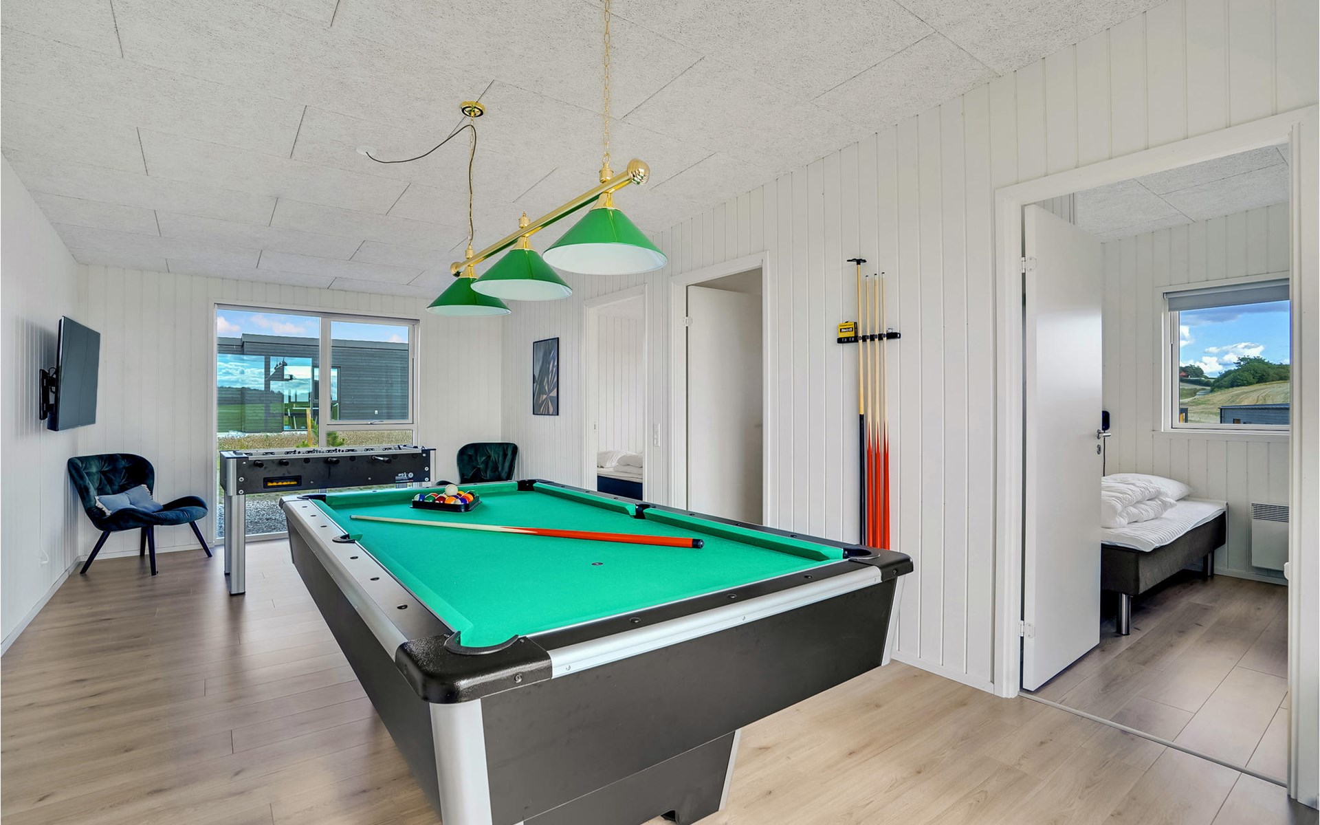 Freuen Sie sich auf dieses schöne Ferienhaus, das moderne Elemente mit heimeligen Akzenten verbindet. Dank des offenen Wohnraums und der weitgehenden Fensterfront wird das eintreffende Licht gleichmäßig verteilt und bietet Ihnen somit einen geräumigen und hellen Raum zum Wohlfühlen. Treten Sie auch auf die teilweise überdachte und offene Terrasse im gepflegten Garten, wo es sich bei frisch Gegrilltem und einem belebenden Frühstück gut aushalten lässt. Außerdem gibt es in diesem Haus einen Aktivitätsraum mit Billard, wo Sie sich gemeinsam einem Wettbewerb unterziehen können. Entspannen Sie sich auch im Whirlpool, währen die jungen Gäste die vorhandenen Spielmöglichkeiten, wie Schaukel und Kletterturm nutzen.
