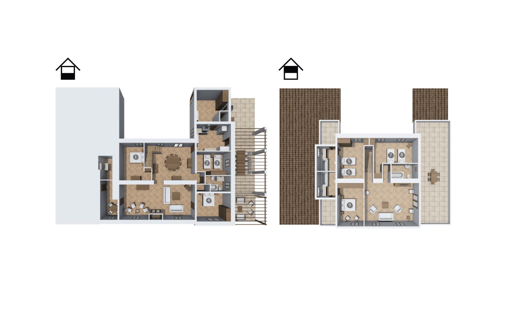 Das Haus besticht durch große Räume, in denen die Seele atmen kann; Dazu trägt auch die Harmonie zwischen dem dominierenden Weißton und den hochwertigen, teils antiken Holzmöbeln bei. Im Wohnzimmer können Sie von stattlichen Ledersofas aus das Knistern des lodernden Kamins beobachten oder sich dank moderner Satellitentechnik auf dem Breitbildfernseher über das Geschehen in der Zwischenzeit zu Hause auf dem Laufenden halten. Vielleicht ziehen Sie es auch vor, sich für die Dauer Ihres Urlaubs komplett von der Hektik des Alltags fernzuhalten, um in dieser friedlichen Umgebung jeden Tag ein Stück mehr in Ruhe und Entspannung zu versinken. In einem Nebenraum können Sie auf Korbstühlen speisen oder den Abend bei einem lustigen Gesellschaftsspiel ausklingen lassen. Die Küche ist komplett ausgestattet; Für andere Hausarbeiten wie Wäschewaschen ist ein separater Raum reserviert. Drei der sechs Schlafzimmer und zwei der Badezimmer befinden sich im Erdgeschoss, eines davon verfügt über ein Doppelbett, eines über ein Einzelbett und eines über zwei Einzelbetten. Die Eigentümer legen großen Wert auf die stimmungsvolle Beleuchtung der Räume und dank der Fenster ist auch der Innenraum den ganzen Tag über hell und freundlich. Davon profitiert auch das Obergeschoss, in dem sich die drei weiteren Schlafzimmer befinden – zwei davon sind mit einem En-Suite-Badezimmer ausgestattet. Ein Doppelbett und zwei Zimmer mit jeweils zwei Einzelbetten bieten viel Flexibilität bei der Zimmerbelegung. Und die Tatsache, dass es im Obergeschoss ein eigenes Wohnzimmer mit einem riesigen Bildschirm gibt, trägt dazu bei, dass auch größere Reisegruppen in dieser Villa ein gewisses Maß an Privatsphäre erwarten können. Vier der Badezimmer verfügen sogar über eine Badewanne, sodass Sie den Tag mit einem Verwöhnerlebnis für Ihre Haut krönen können.