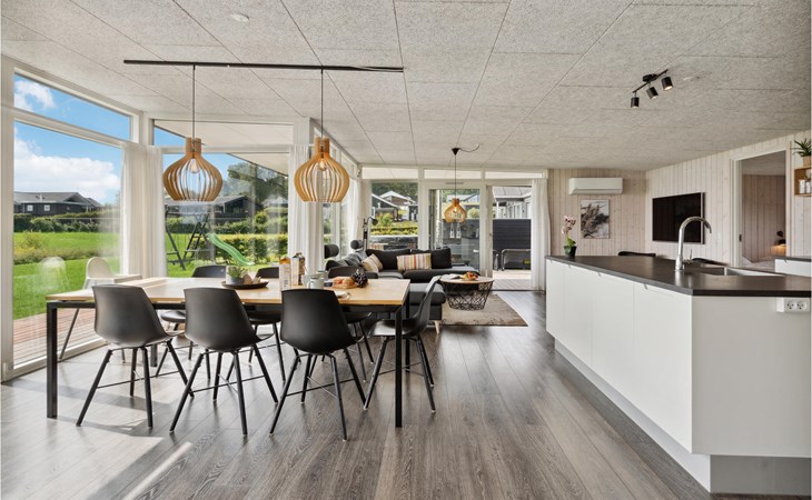 Ein attraktives Ferienhaus von 2016, mit Aussicht auf das Meer im Lillebælt und den Wald. Zum Haus gehören schöne, große Terrassen, davon zwei überdacht. Das große Ess- und Wohnzimmer ist der natürliche Mittelpunkt der Familie und kann selbst beim schlechtesten Wetter noch echte Urlaubsstimmung herbeizaubern. Durch die großen Fenster dort und in der Küche wird das Haus von Licht durchströmt, und Sie haben eine herrliche Aussicht über die Umgebung. Die drei Schlafzimmer sind gut eingerichtet, mit guten Betten, und in S3 steht ein Hochbett. Das Haus ist aus hochwertigen Materialien erbaut und verfügt über eine Wärmepumpe. Kelstrup bietet eine Landschaft aus grünen Feldern und Tälern, Wäldern und Fjorden, die in den Lillebælt münden. Ein wirklich familienfreundliches Gebiet mit kinderfreundlichem Strand mit ruhigem Wasser am Lillebælt. Die Stadt Haderslev in der Nähe liegt um einen charmanten alten Stadtkern im Schatten der Kathedrale. Machen Sie einen schönen Spaziergang im Dammpark von Haderslev direkt im Zentrum. In Aabenraa, einer anderen gemütlichen Stadt im südlichen Jütland, können Sie in der langen Fußgängerzone shoppen und die vielen besonderen Haustüren bewundern. Länger in Richtung Süden liegt das Schloss Gravenstein, in dem sich jeden Sommer die königliche Familie versammelt. Bitte bemerken Sie, dass im Gebiet viele neue Häuser gebaut werden, und es auf einigen der Grundstücke Bauarbeiten geben kann.