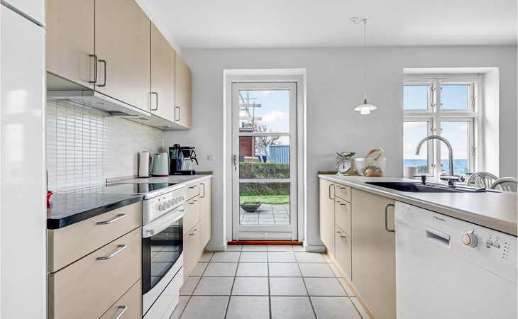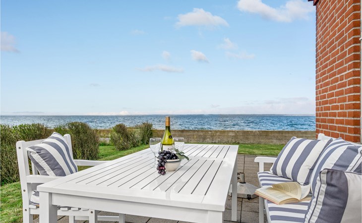 Das Ferienhaus liegt in der 1. Reihe zum Wasser in der gemütlichen Hafenstadt Lohals in Nordlangeland.