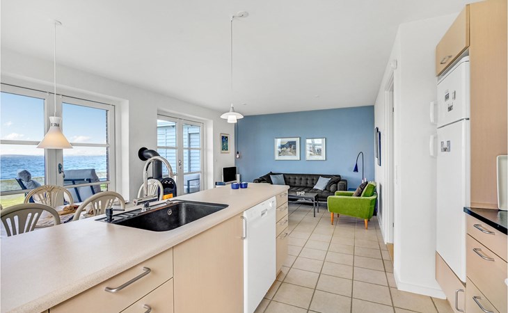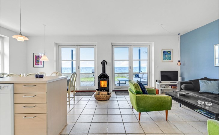 Hier erwartet Sie ein komfortables Ferienhaus mit gutem Standard und ansprechenden Möbeln. Die Wohnfläche verteilt sich auf zwei Etagen und Sie finden Platz in zwei Schlafzimmern, einem Wohnraum, einer Essküche und einem Badezimmer mit Dusche. Vom Wohnbereich mit offener Küche bietet sich Ihnen ein fantastischer Blick auf das Wasser. Entspannen Sie hier nach einem langen Urlaubstag auf dem Sofa und genießen Sie das Prasseln des Feuers im Kamin.