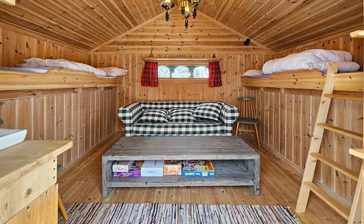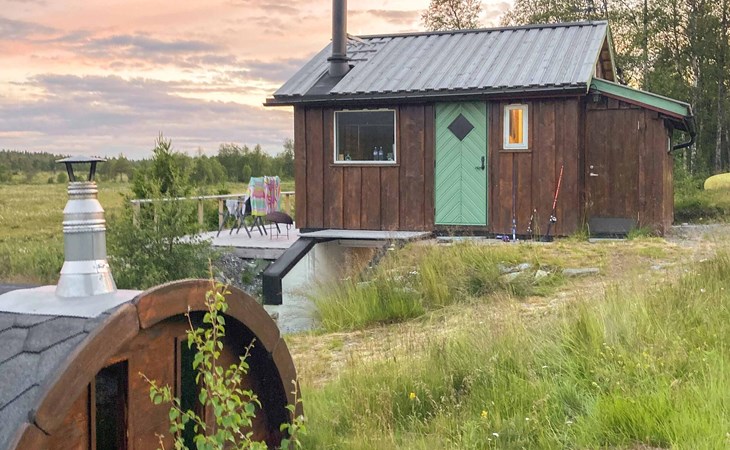 Gemütliches und charmantes Holzhaus mit Fasssauna in einer wunderschönen Landschaft mit vielen Aktivitätsmöglichkeiten.