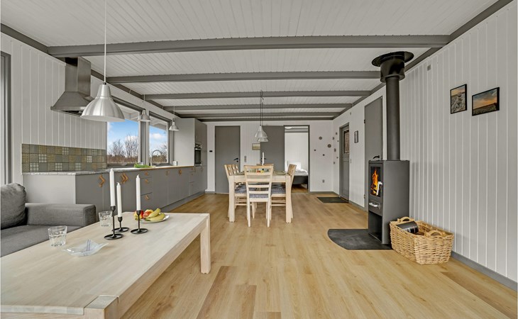 Das einladende Haus erwartet Sie in attraktiver Alleinlage inmitten herrlicher Natur und nahe dem Fjord. Machen Sie es sich hier mit Ihren Lieben gemütlich und gönnen Sie sich eine wohlverdiente Pause vom Alltag. Die hellen Räume mit einer modernen und gemütlichen Einrichtung machen das Haus zu einer wahren Wohlfühloase. Hier ist alles darauf ausgerichtet, dass Sie die wunderbare Aussicht bestmöglich genießen können, sei es beim gemeinsamen Essen am Küchentisch oder beim Nachmittagskaffee auf dem Sofa. Kühlere Abende werden besonders gemütlich, wenn Sie im Kaminofen anfeuern und beim Prasseln der Flammen noch lange plaudern.