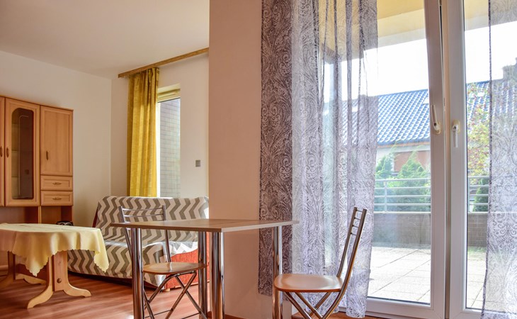 Die helle und einladende Erdgeschosswohnung empfängt Sie mit einer modernen und gemütlichen Einrichtung, die Stil und Komfort gekonnt vereint. Großzügige Fenster lassen viel Tageslicht herein und schaffen eine freundliche Atmosphäre, die zum Wohlfühlen einlädt. Die geschmackvoll gestalteten Räume bieten Ihnen viel Platz zum Entspannen, während der direkte Zugang zur Terrasse ein Highlight ist, um bei gutem Wetter drinnen und draußen zu verweilen. Hier können Sie die Seele baumeln lassen und Ihren Urlaub in vollen Zügen genießen.