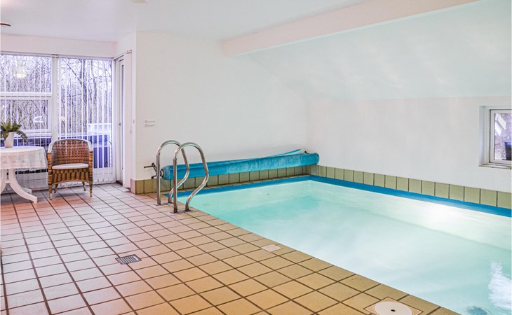 Gemütliches Ferienhaus mit Poolbereich, der mit Pool, Massagewanne und einem Badezimmer Sauna ausgestattet ist.