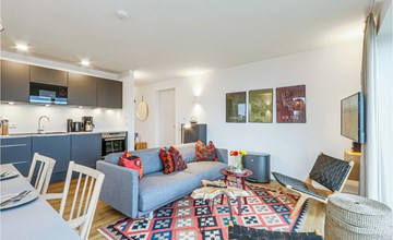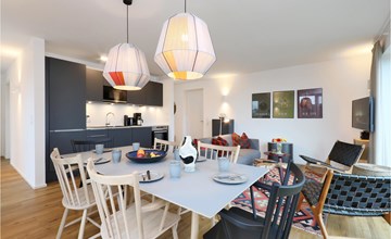 Willkommen in Ihrem exklusiven Penthouse, in dem Sie sich auf einen in allen Belangen wunderbaren Aufenthalt einstellen können. Sie werden von einem hochwertige Ausstattung, wohnlichen Ambiente und einer Einrichtung im skandinavischen Design willkommen geheißen - ein Ort, perfekt für die gehobene Auszeit. Sie finden dank dem Bio-Kamin auch an kalten Tagen eine behagliche Wärme vor, aufgrund der bodentiefen Fenster ist die Wohnung lichtdurchflutet und besonders lebenswert. Vom Balkon aus können Sie gemeinsam mit Freunden oder der Familie den Blick weit über die Landschaft schweifen lassen.