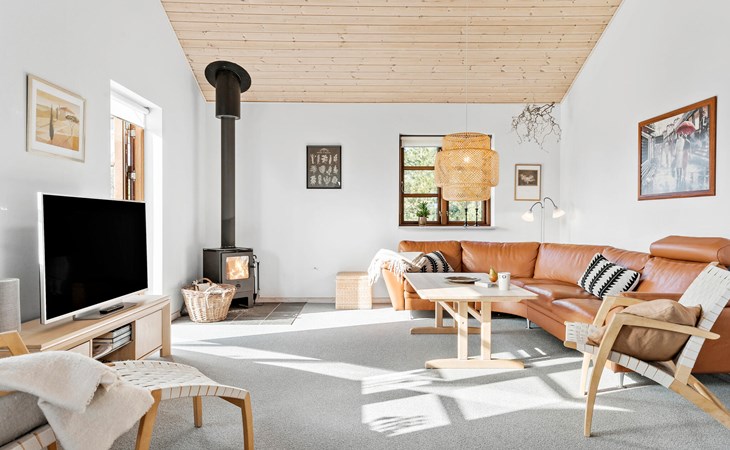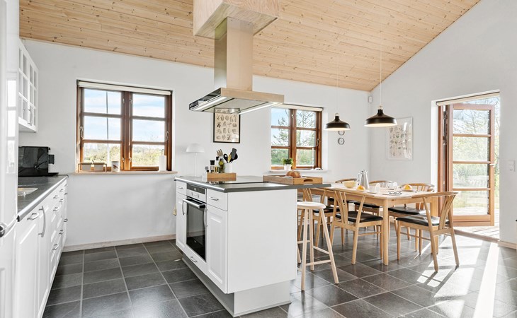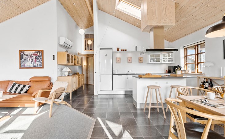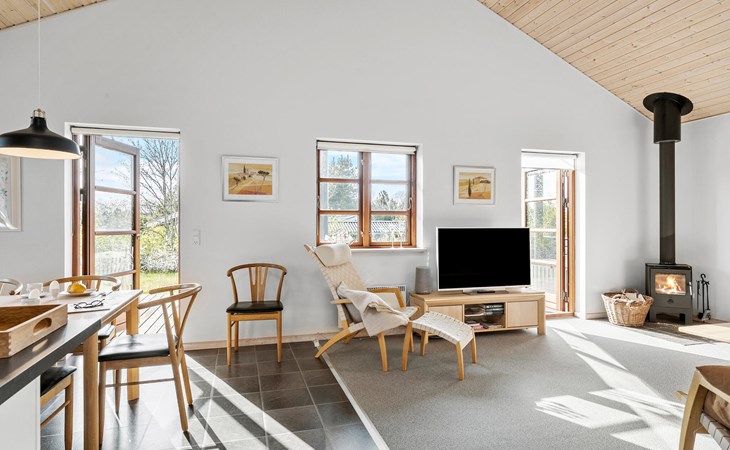 Entfliehen Sie dem Stadtleben und verbringen in diesem schönen und einladenden Ferienhaus einen unvergesslichen Urlaub. Im Inneren schaffen helle Farben, viel Holz und eine hochwertige Einrichtung die ideale Umgebung für Ihren Ferienalltag. Die hohen Decken schaffen ein luftiges Raumklima, das Sie im Herzen des Hauses, dem Wohnraum mit Küche, Ess- und Wohnbereich, voll auskosten können.
