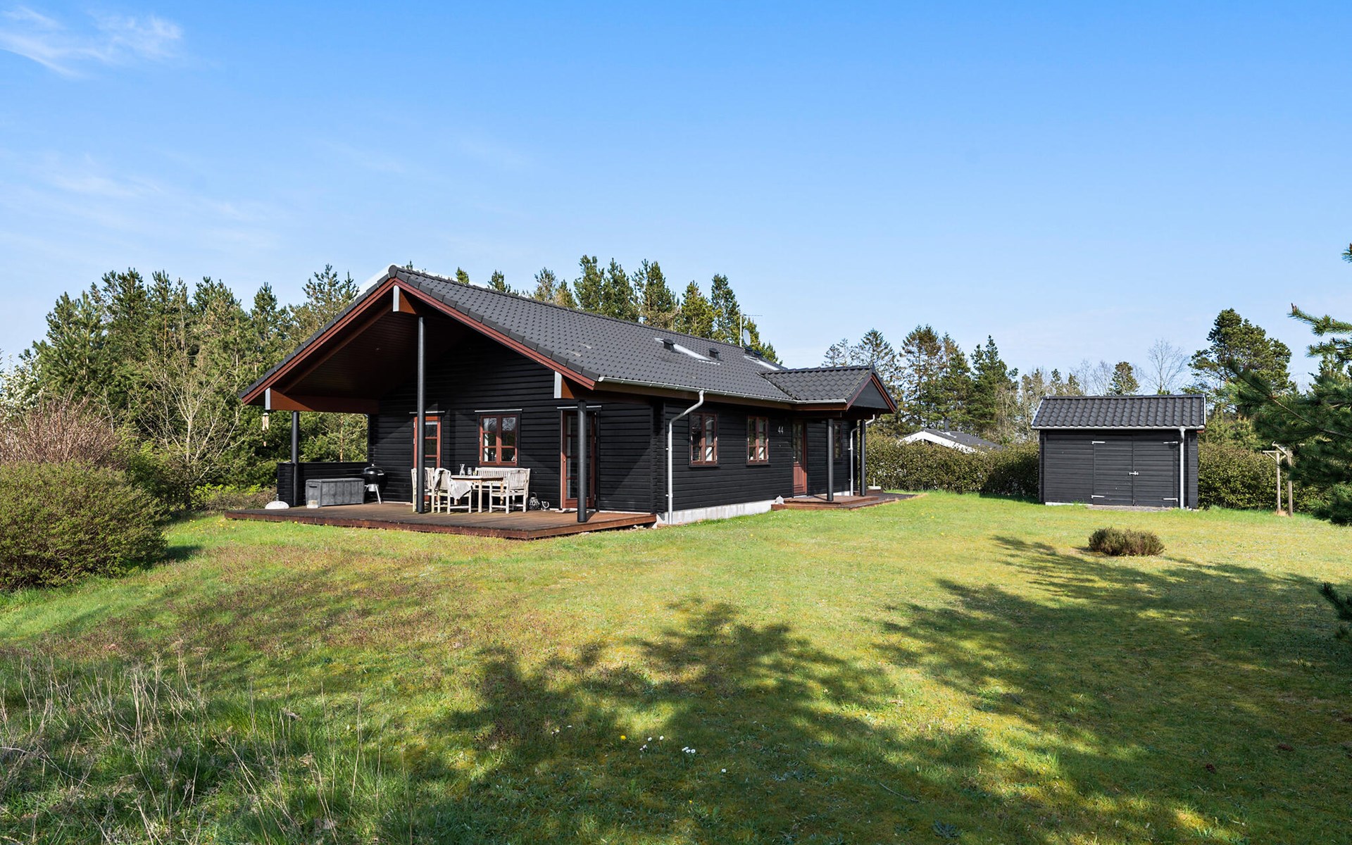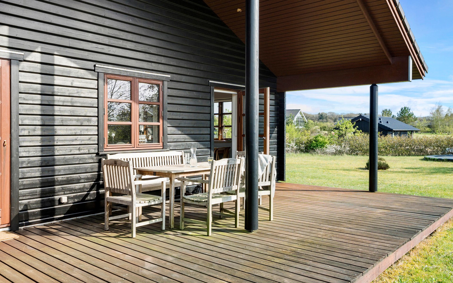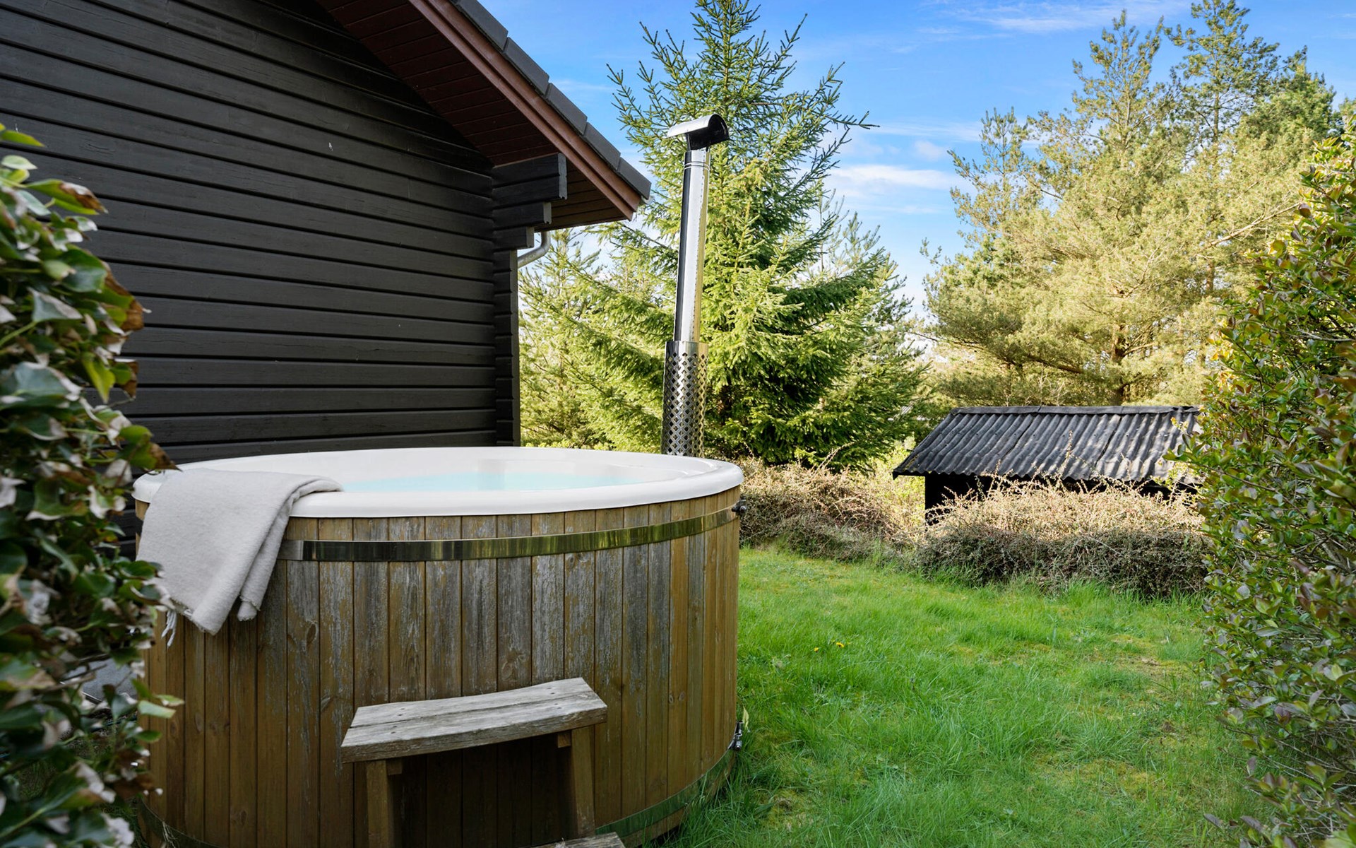 Entspannen Sie sich auch auf den zwei Terrassenbereichen. Zum einem um zu grillen und zu essen oder um einfach die Seele baumeln zu lassen, kühle Getränke zu schlürfen oder sich im Finnischen Holzbad auszuruhen, während Ihre Kinder sich auf dem Trampolin auspowern.