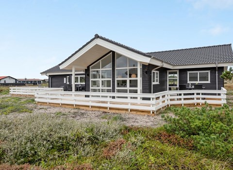 Auf einem Waldgrundstück, nahe am schönen Slette Strand ist dieses gemütliche und luxuriöse Ferienhaus zu finden.