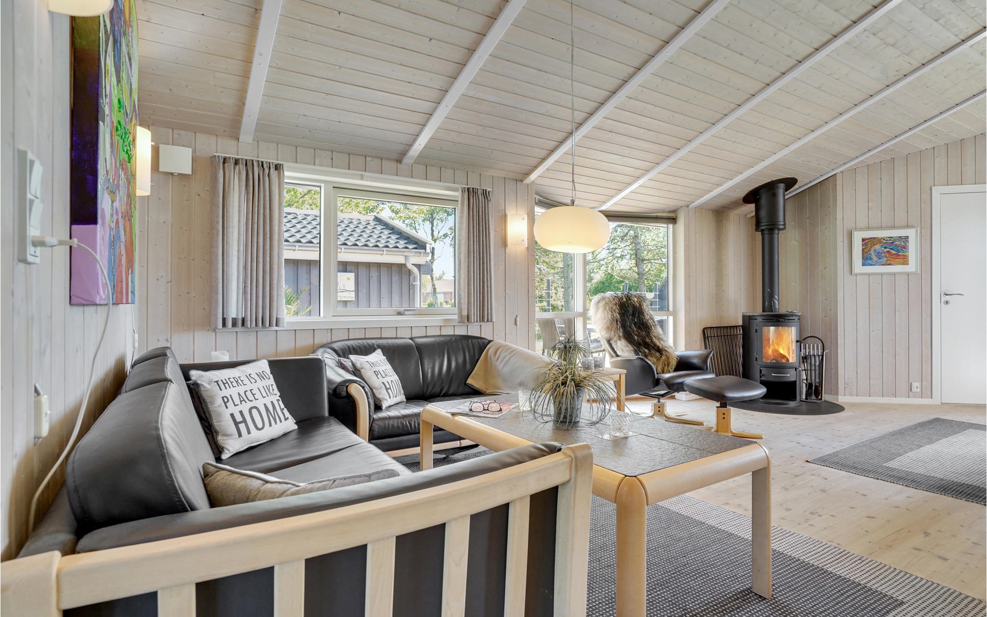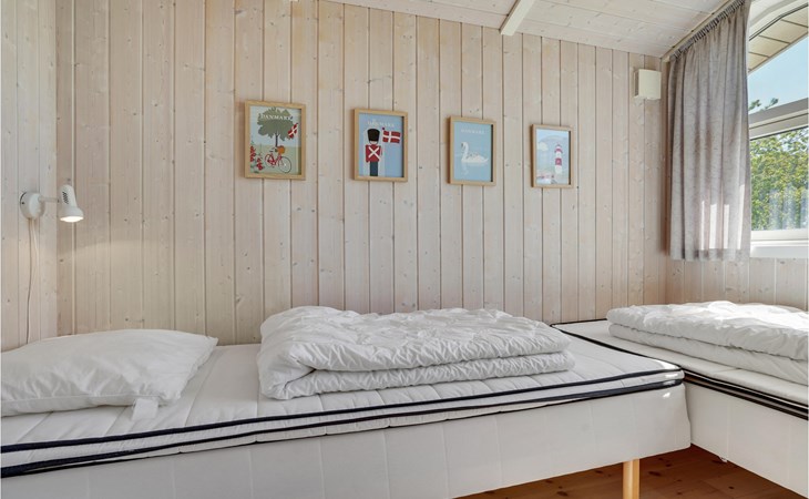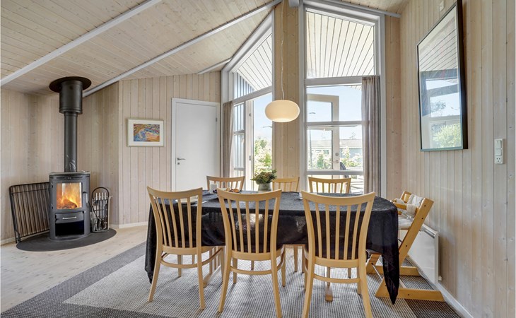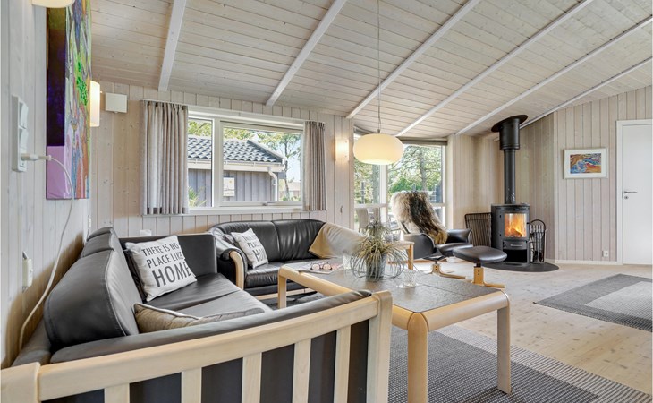 Mit 3 Schlafzimmern, von denen 2 mit Doppelbetten und eines mit 2 Einzelbetten ausgestattet sind bietet es Platz für 6 Personen. An kühlen Nachmittagen können Sie es sich hier gemeinsam am Kaminofen bequem machen. Entspannen Sie nach einem langen Strandspaziergang in der Sauna und nehmen Sie ein sprudelndes Bad im Whirlpool.