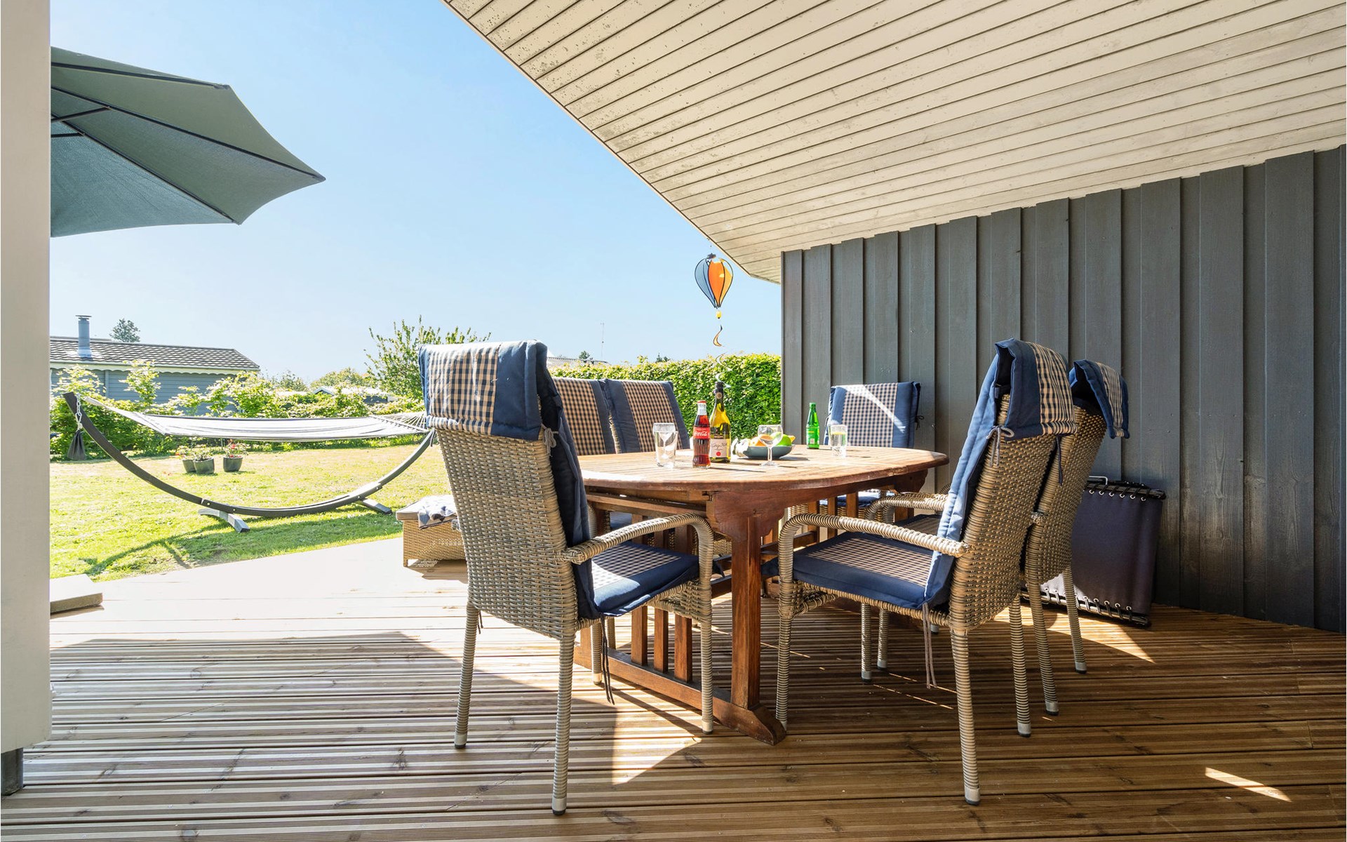 Im Garten gibt es Spielgeräte für Ihre Kinder. Genießen Sie die Sonne auf einer der Terrassen und bereiten Sie leckere Speisen auf dem Grill zu.