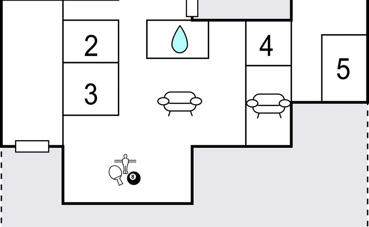 Ein gutes Ferienhaus für Urlauber, die sowohl die Gemeinsamkeit lieben, sich nachts aber gerne in die eigenen Zimmer zurückziehen möchten. Draußen gibt es mehrere Terrassen, so dass mehrere kleinere Gruppen sich gut auf dem Grundstück verteilen können. Von hier ist es nicht weit zum Wasser und Hasmark hat viel zu bieten: fantastischen Strand, Erlebnisbad, Restaurant, Spielplätze und Minigolf und in weniger als einer Stunde sind Sie in Odense, wo alle Vorzüge der Großstadt geboten werden, wie Restaurants, Cafés und Geschäfte aller Art. Sie haben auch weniger als eine halbe Stunde zur fünischen Autobahn und damit setzt nur die Fantasie Grenzen für all die Dinge, die Sie hier erleben können.