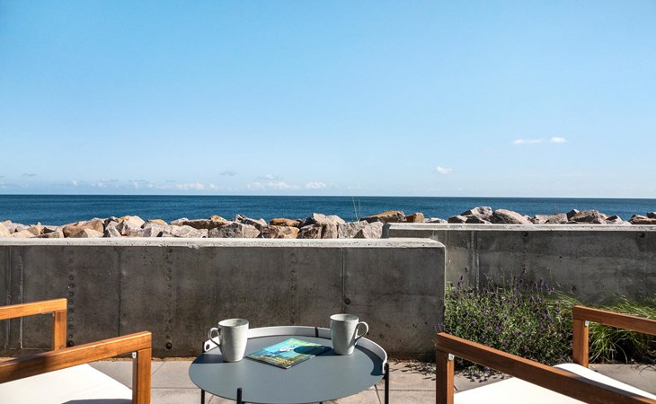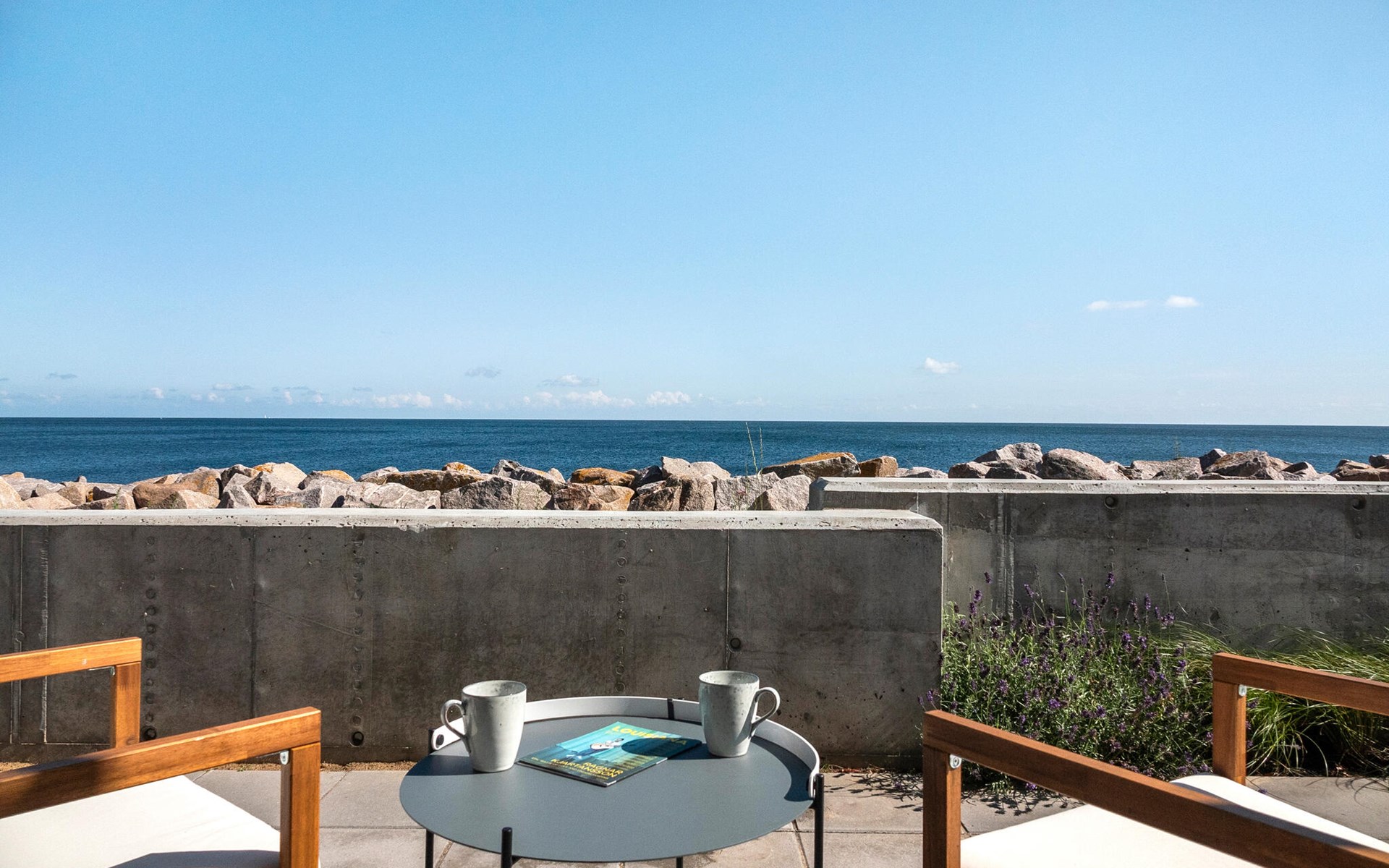 Draußen erwartet Sie eine einladende Terrasse, von dem aus Sie die frische Meeresbrise und den herrlichen Ausblick genießen können. Dank der Nähe zum Meer bieten sich Ihnen hier alle Möglichkeiten für erfrischende Badeausflüge und entspannende Wanderungen entlang der Küste.