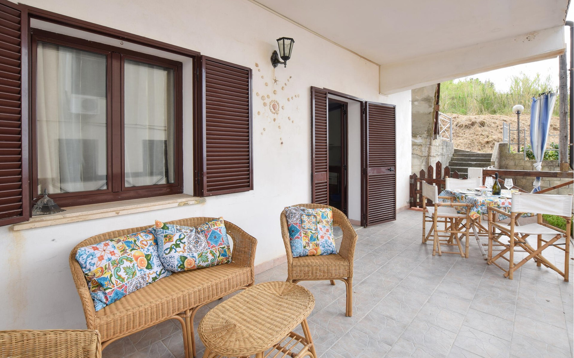 Nehmen Sie sich Zeit für ein gutes Buch oder ein Glas Wein auf Ihrer privaten Terrasse. Genießen Sie dabei die ruhige Atmosphäre der gepflegten Anlage. Die großzügige, überdachte Außenfläche mit bequemen Sitzmöbeln eignet sich ideal zum Entspannen, Essen im Freien oder als schattiger Rückzugsort nach einem Tag am Meer.