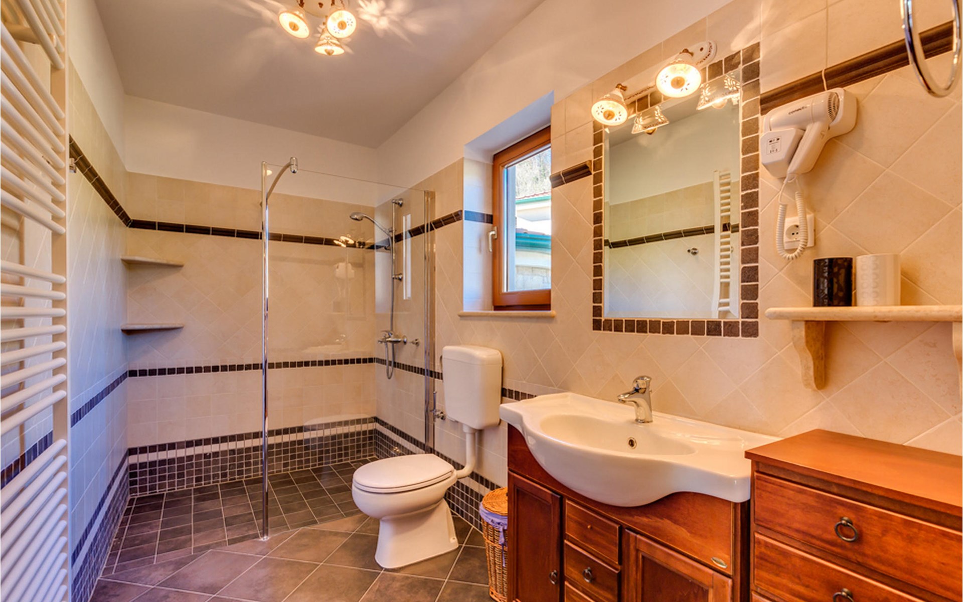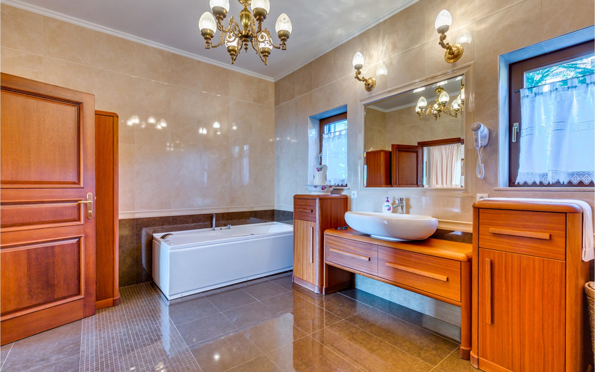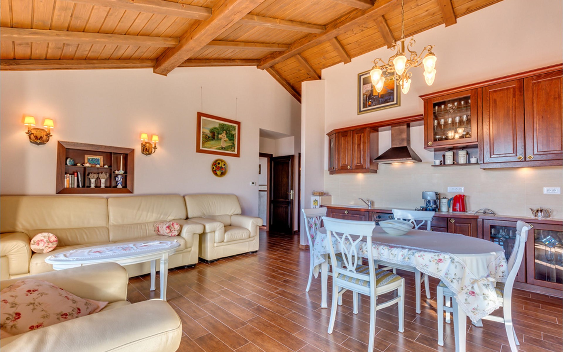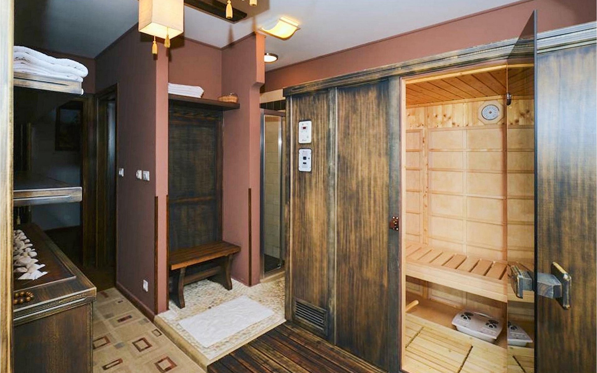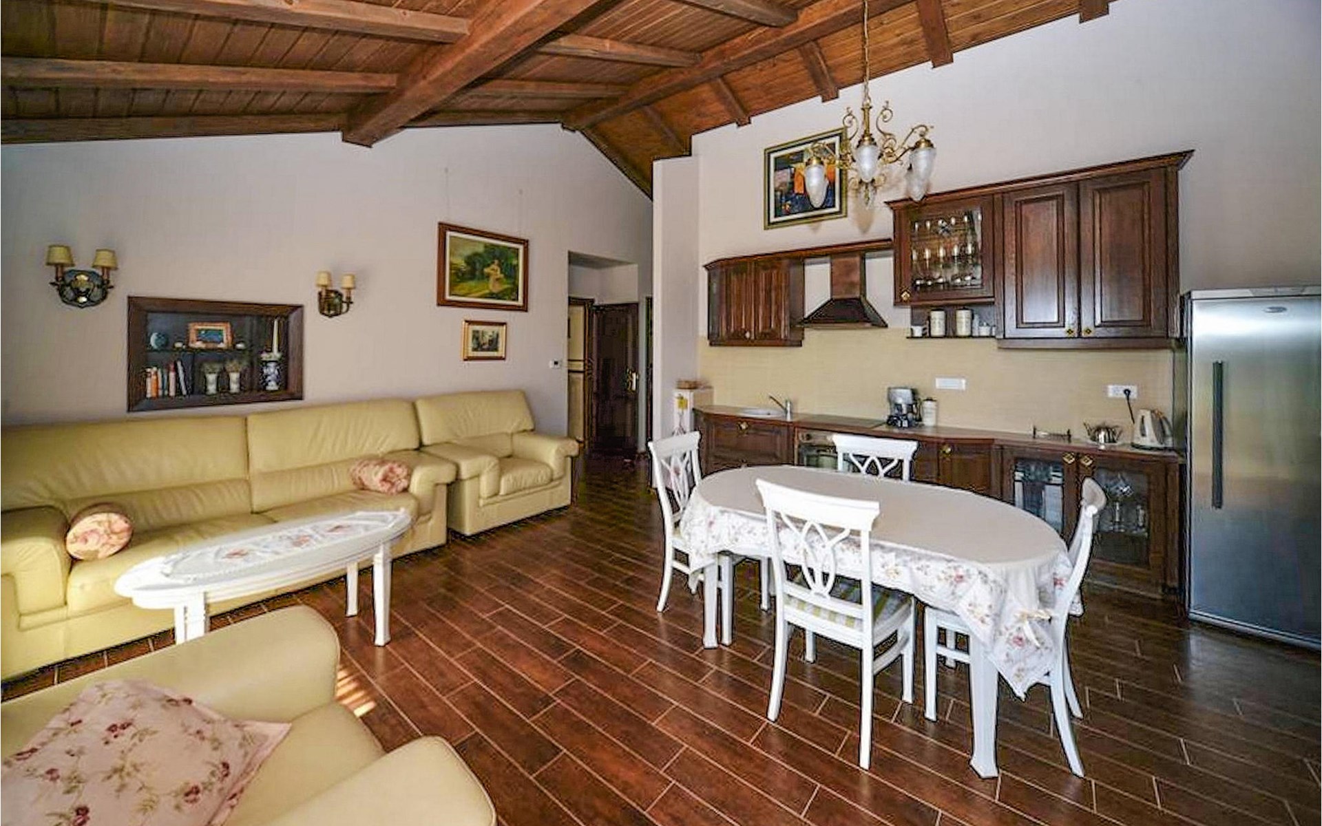 Denken Sie nicht, dass das Hauptmerkmal der Villa ihre rustikale Atmosphäre ist. Sie könnten sich nicht mehr irren: In der Villa finden Sie die Sauna und den Heimkino.