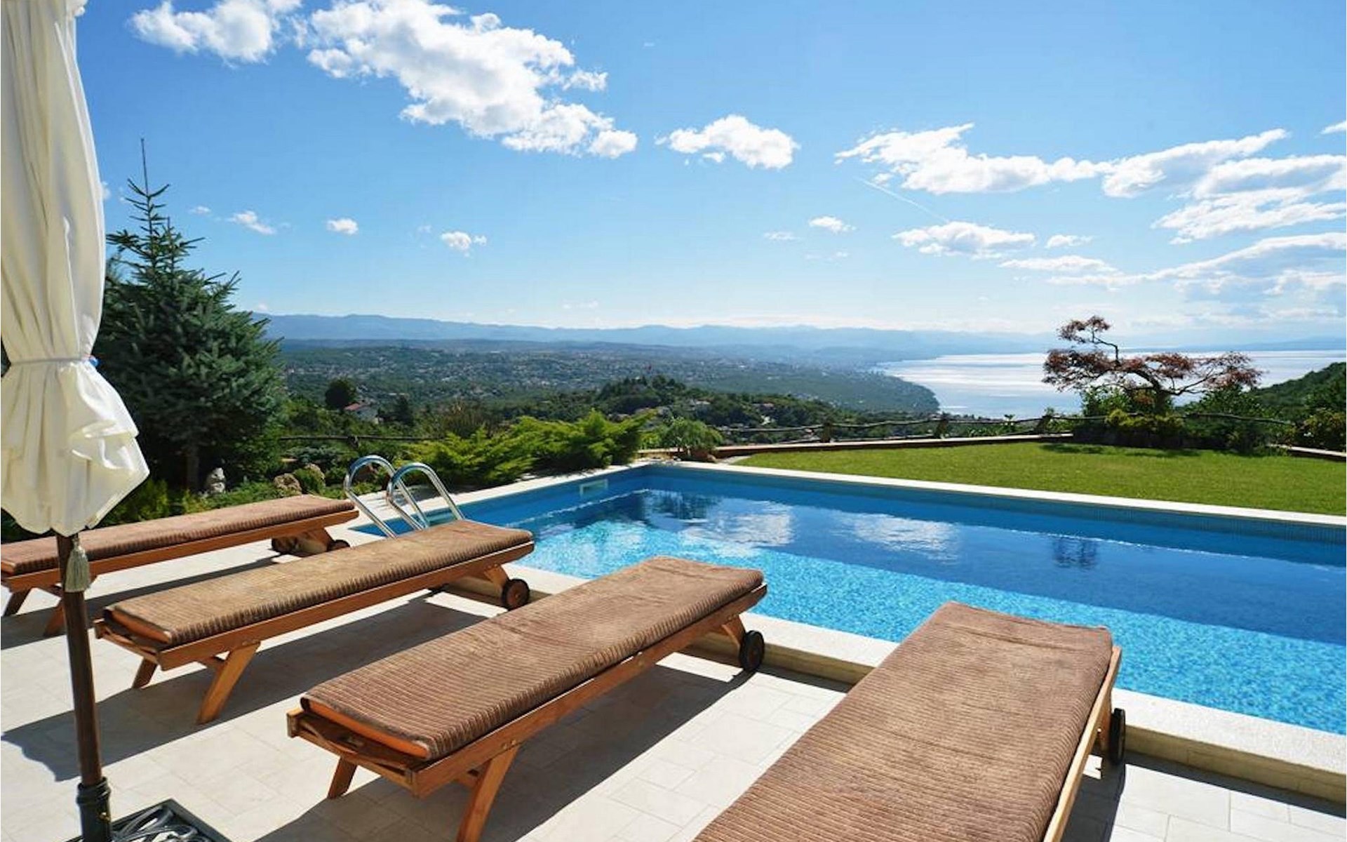 Buchen Sie die Villa Lunin und verbringen Sie einen unvergesslichen Urlaub in Kroatien!Im Herzen von Matulji und im Hinterland der wunderschönen Opatija Riviera, die Lage der Villa Lunin ist zur gleichen Zeit in der Nähe von touristischen Attraktionen aber auch genug abgelegen, um einen entspannenden und ruhigen Urlaub zu ermöglichen. Von diesem, von Wäldern umgegebenen Dorf, ergibt sich ein herrlicher Blick auf die blaue Adria. Eine lokale Attraktion ist das Gebiet "Breski dol", das als botanisches Reservat zum besonderen Schutz empfohlen wurde. Opatija, eine der schönsten und romantischen Küstenstädte, ist nur eine kurze Fahrt von der Villa Irina entfernt. Opatija gehört zu den ältesten Touristenzentren in Kroatien, die Gäste aus dem ganzen Europa währen des ganzen Jahres anzieht. Bekannt für seine Wellness-Programme, Wanderwege, Bergsteigen und sein kulturelles Erbe, Opatija ist auf jeden Fall ein Muss!