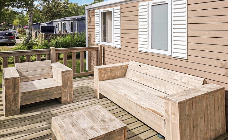 Auf der großen Holzterrasse können Sie die Ruhe der Umgebung genießen, sich bei einem Getränk entspannen oder den Abend bei einem Sonnenuntergang ausklingen lassen. Der angrenzende Campingplatz bietet Ihnen zahlreiche Freizeitmöglichkeiten. Mieten Sie ein Boot für einen Ausflug auf dem Wasser oder erkunden Sie mit gemieteten Fahrrädern die malerischen Radwege. Kinder können sich auf dem Spielplatz austoben, während sportliche Gäste eine Partie Tennis genießen können.