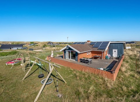 Dieses wundervolle Ferienhaus liegt direkt hinter der äußersten Dünenreihe und bietet von seinem Grundstück direkten Zugang zum Strandbereich. Vom Haus aus genießen Sie einen atemberaubenden Panoramablick auf das Kattegat und die Dünen. Große Terrassen in Richtung Meer und Süden laden dazu ein, das Outdoor-Leben von frühmorgens bis spätabends zu genießen. Das Haus ist geschmackvoll eingerichtet und erscheint hell und einladend mit auffälligen Holzpaneelen und einer gut ausgestatteten Küche, ideal, um das Kochen zu einem geselligen Erlebnis zu machen. Das Haus ist ein Nachbarhaus von A26530 und bietet gemeinsam mit diesem Zugang zu einer Schaukel und einem Sandkasten hinter der äußersten Dünenreihe.