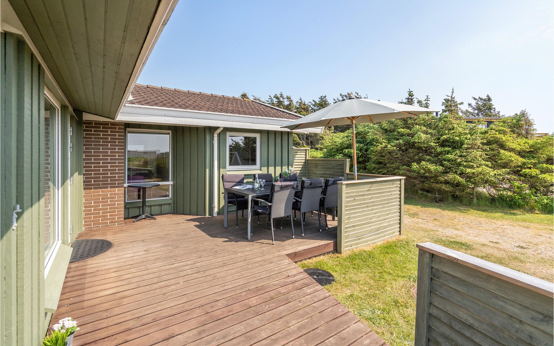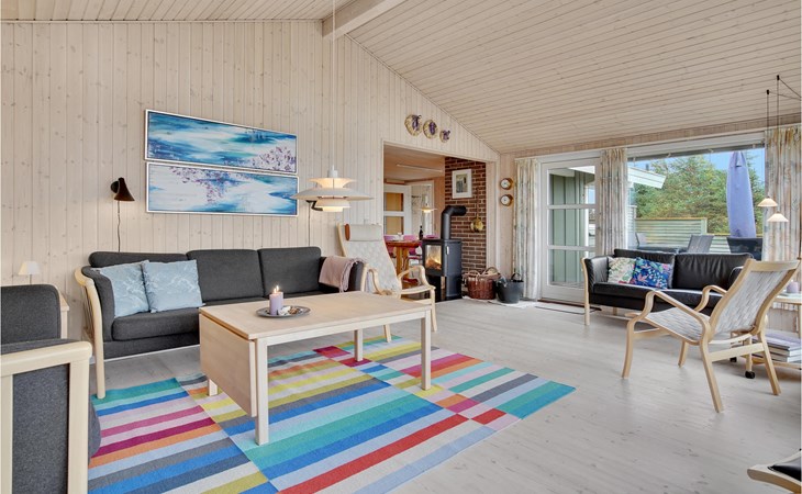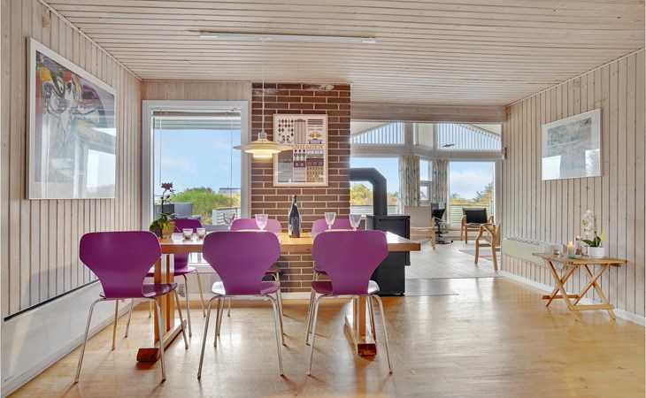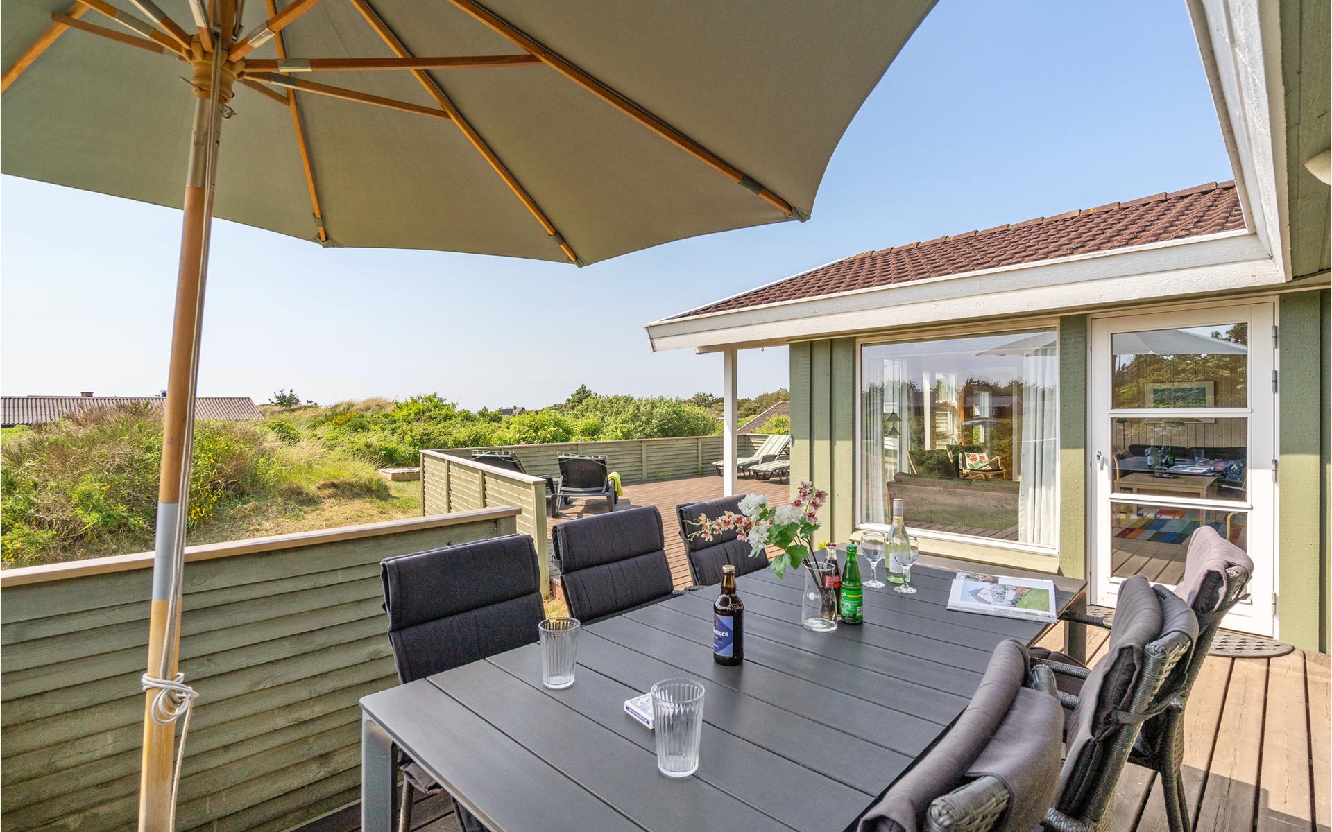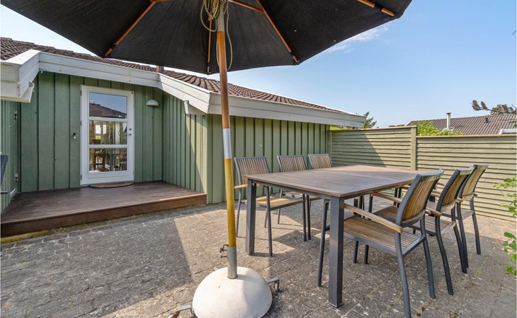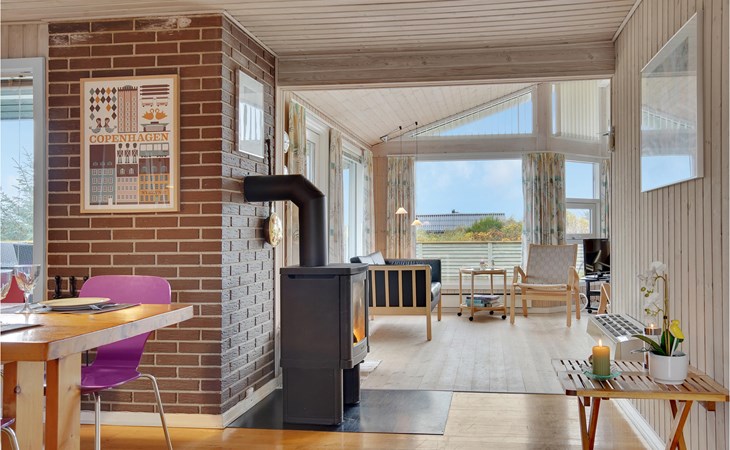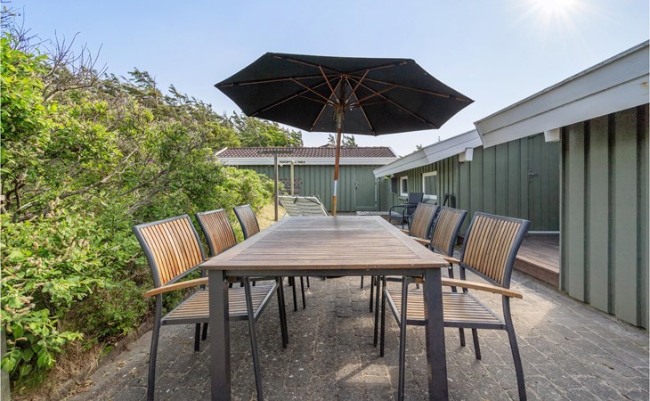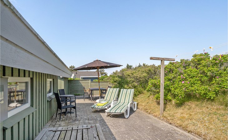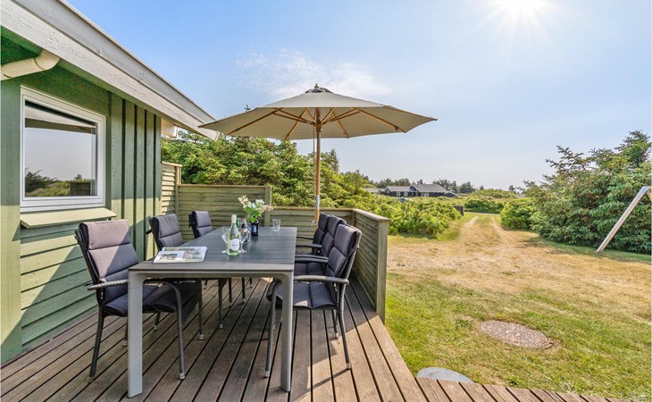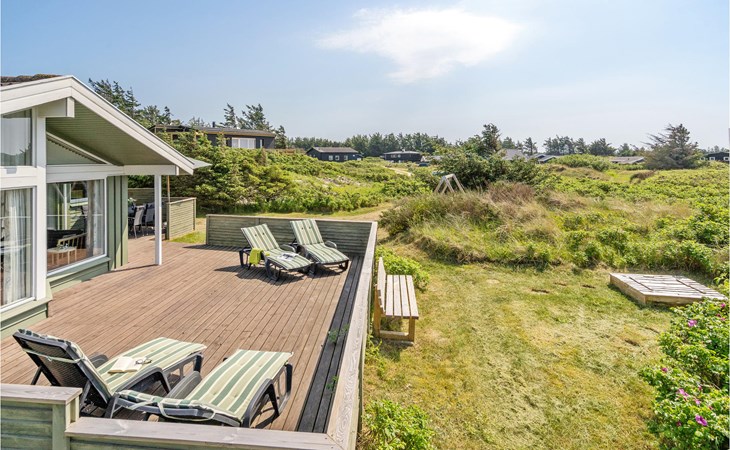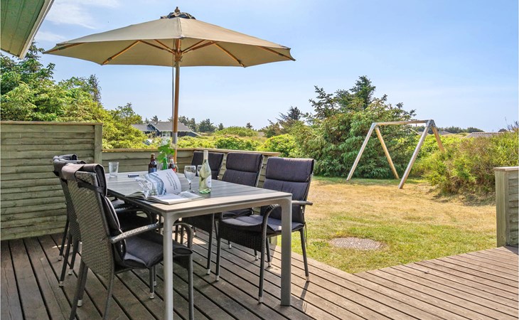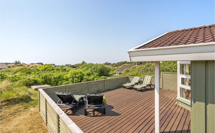 Dieses gut eingerichtete, moderne Ferienhaus liegt in einem ruhigen, naturschönen Gebiet nur wenige Gehminuten von der Nordsee. Es ist von funktionellen Holzterrassen umgeben, auf denen Sie die Sonne genießen können und immer Windschatten finden werden. Das Haus hat große Fenster, von denen man eine ausgezeichnete Aussicht aufs Meer hat, und ist gemütlich eingerichtet. Im Wohnraum gibt es Holzboden. Ein gut ausgestattetes Ferienhaus mit Platz für zwei Familien.