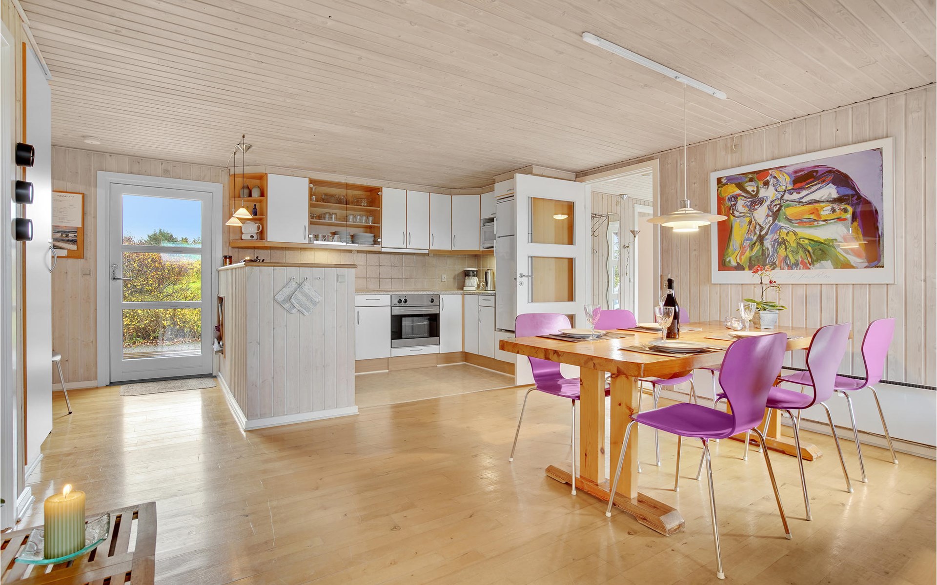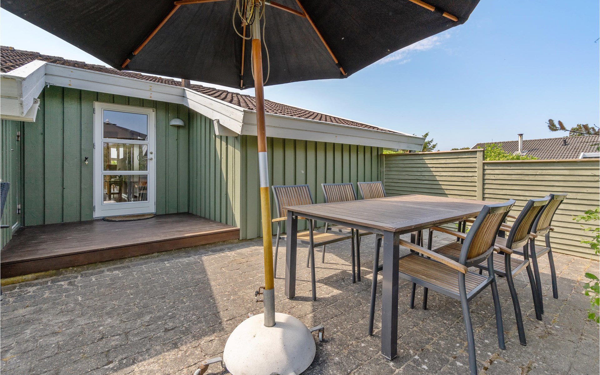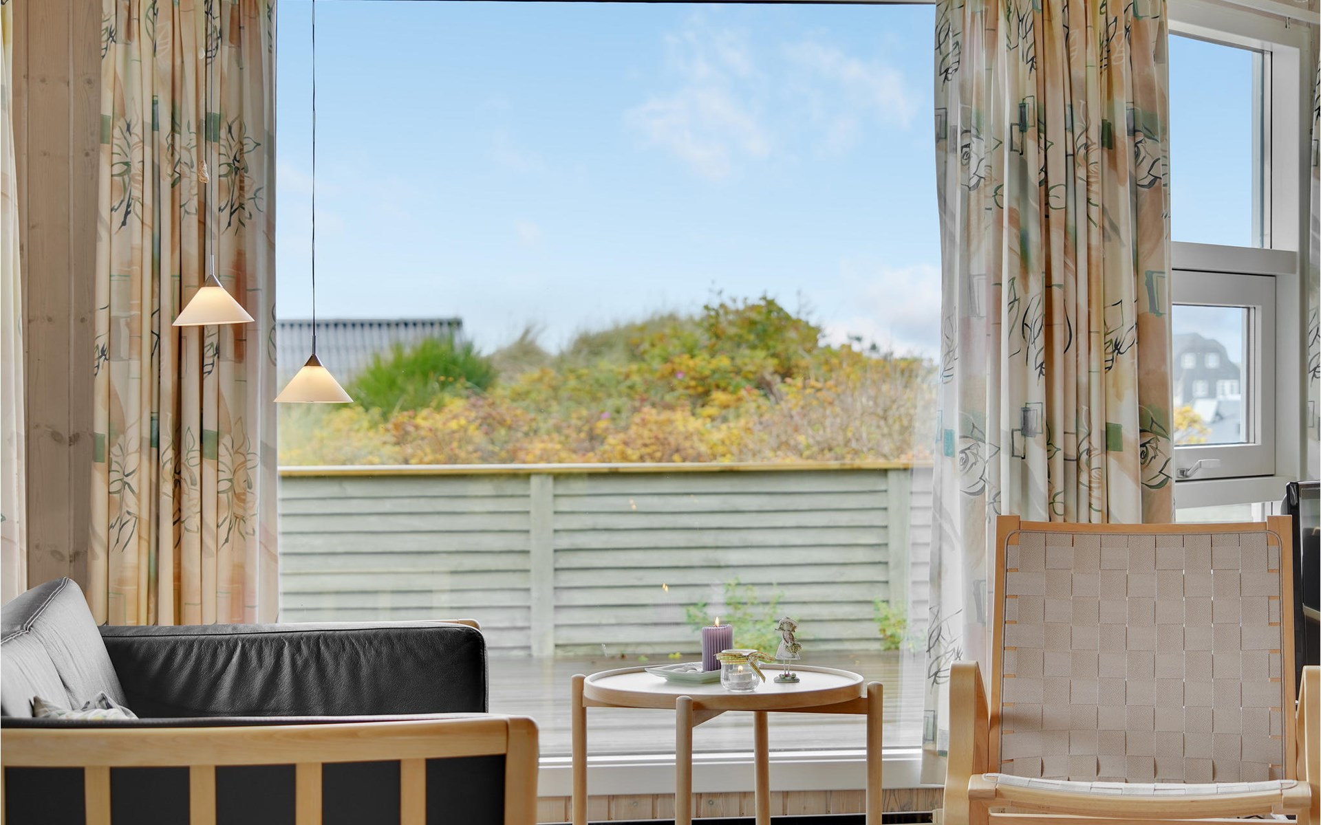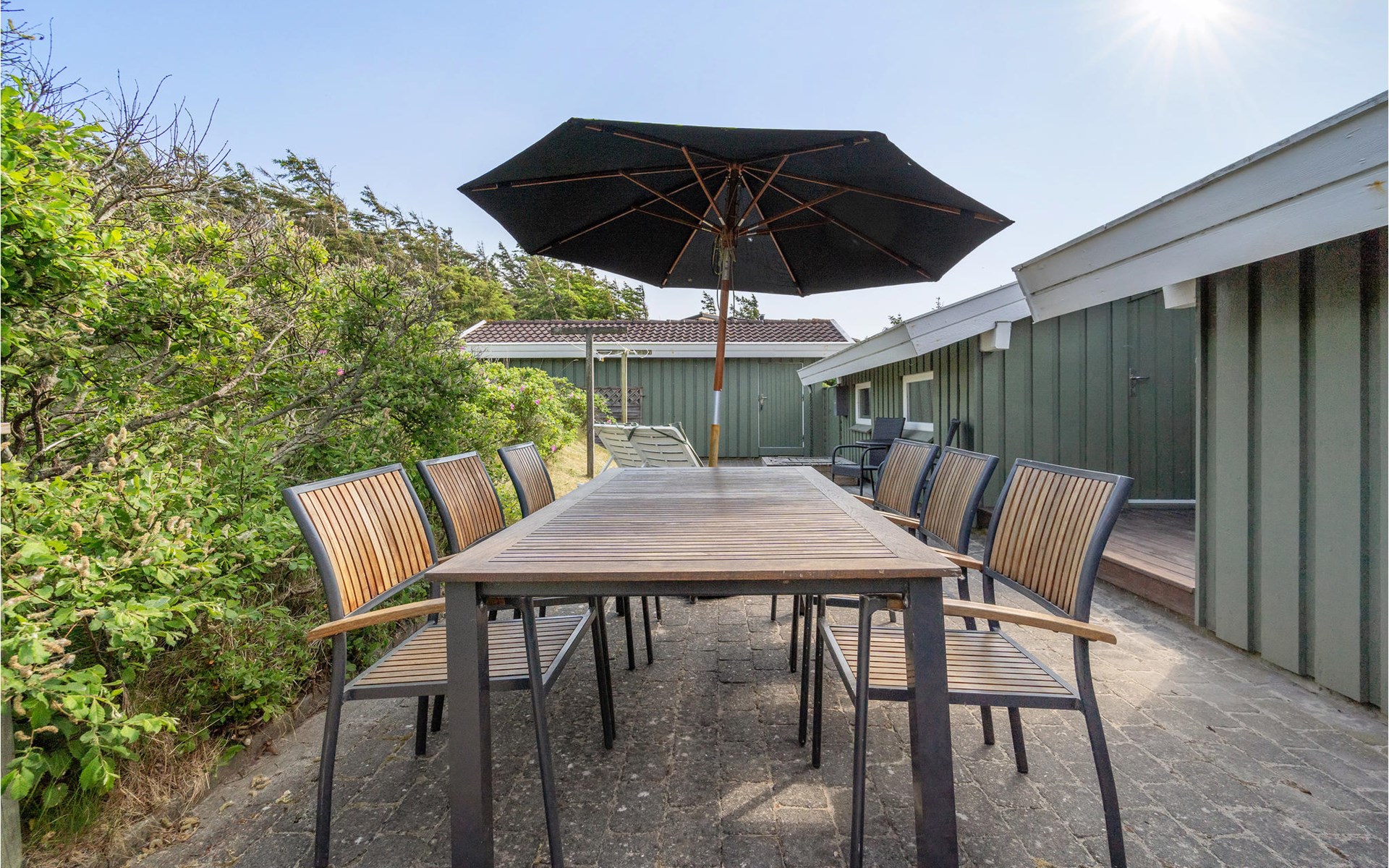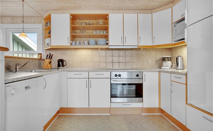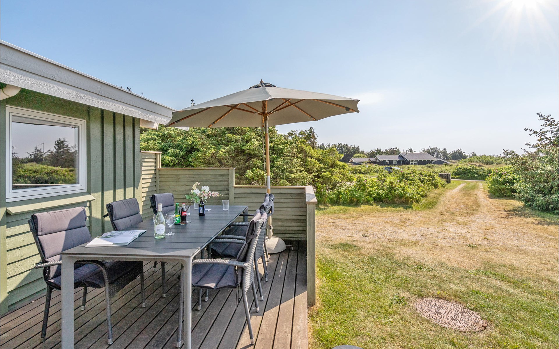 Dieses gut eingerichtete, moderne Ferienhaus liegt in einem ruhigen, naturschönen Gebiet nur wenige Gehminuten von der Nordsee. Es ist von funktionellen Holzterrassen umgeben, auf denen Sie die Sonne genießen können und immer Windschatten finden werden. Das Haus hat große Fenster, von denen man eine ausgezeichnete Aussicht aufs Meer hat, und ist gemütlich eingerichtet. Im Wohnraum gibt es Holzboden. Ein gut ausgestattetes Ferienhaus mit Platz für zwei Familien.