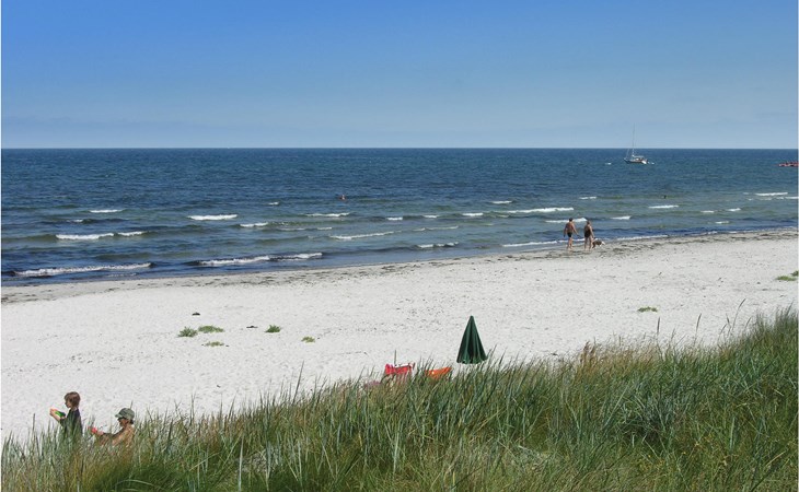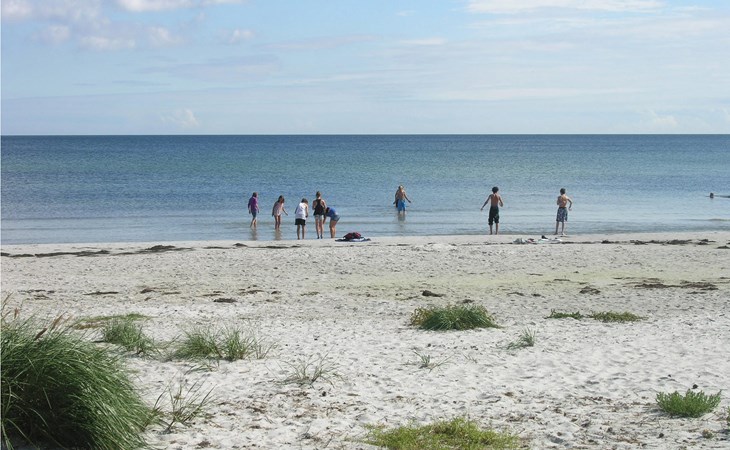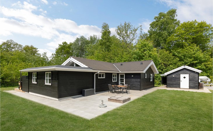 Schönes und hübsch eingerichtetes Luxusferienhaus aus Holz auf einem ruhig gelegenen Naturgrundstück bei Hasle Lystskov mit Naturpfaden, Fahrradwegen und einem schönen Badestrand.