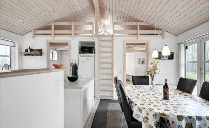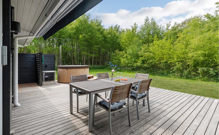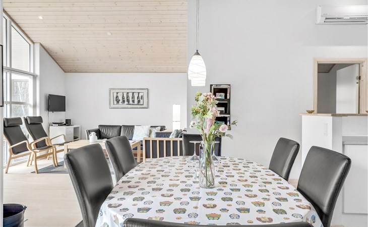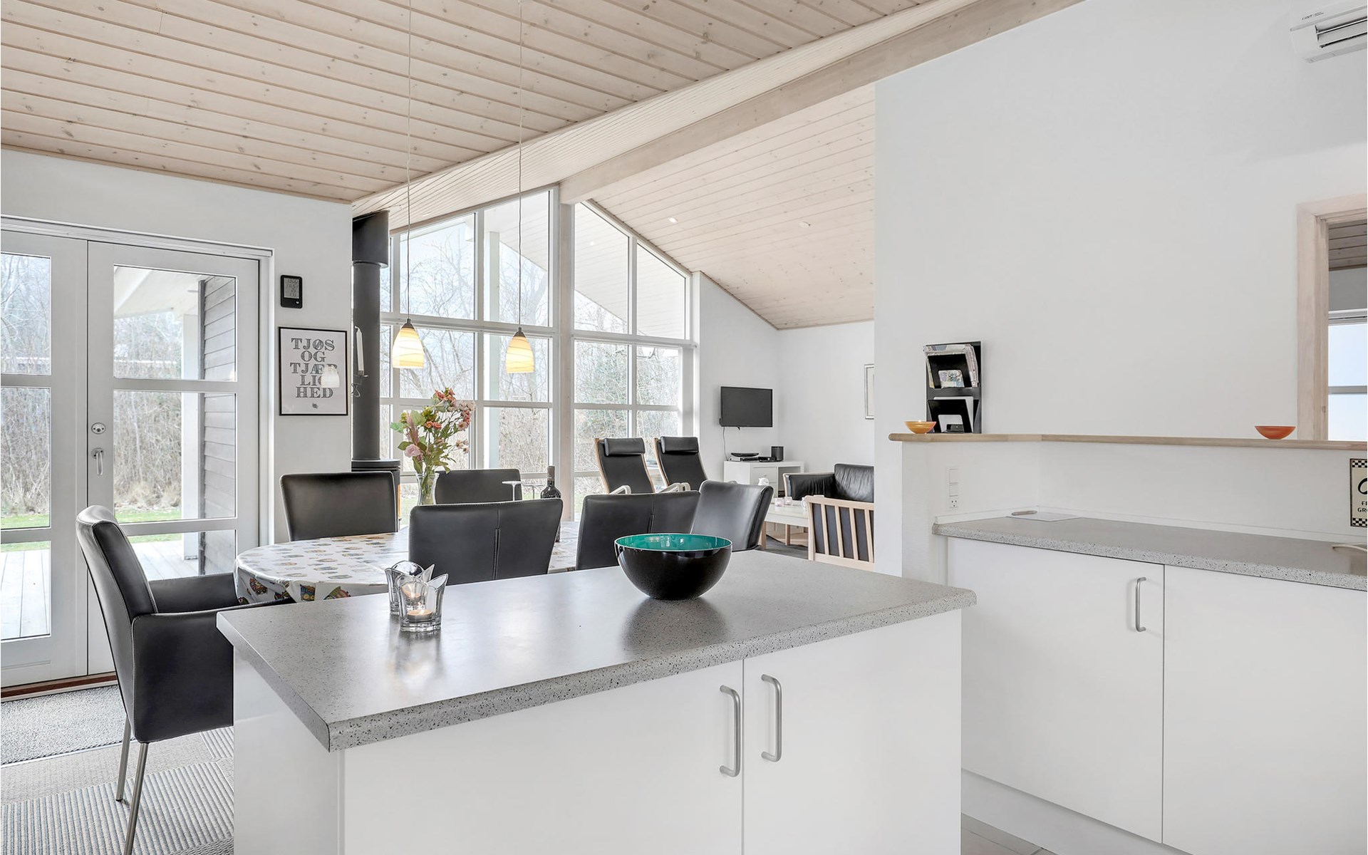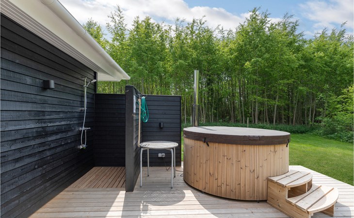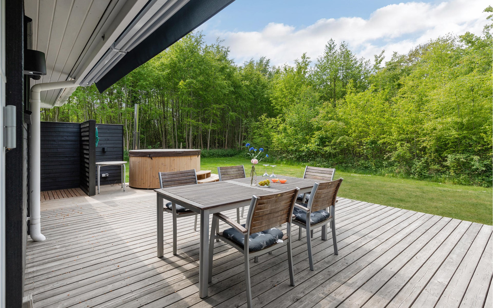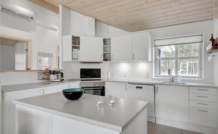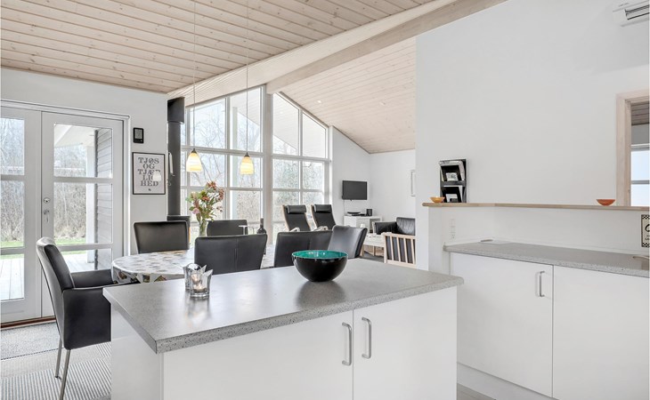 Dieses Ferienhaus ist hell und modern eingerichtet und mit einer offenen Küche und einem schönen Ess- und Wohnzimmer mit komfortablen Möbeln ausgestattet. Das Haus verfügt über drei gute Schlafzimmer und ein großes Badezimmer mit Badewanne. Hier können Sie sich nach einem langen Ferientag entspannen und vom Wasser massieren lassen. Vom Wohnzimmer gelangen Sie auf eine schöne Holzterrasse, wo Sie schöne Stunden an der frischen Luft und mit der Familie verbringen können.