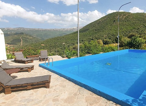 Der Außenbereich lädt zum Verweilen ein. Jede der Ferienwohnungen auf dem Grundstück verfügt über einen privaten Gartenabschnitt oder eine Terrasse. Nutzen Sie die Sitzgelegenheiten für gemütliche Mahlzeiten im Freien oder entspannen Sie sich im Schatten der Pergola. Der Pool, den Sie sich mit den anderen Gästen teilen, bietet eine willkommene Abkühlung an warmen Tagen.