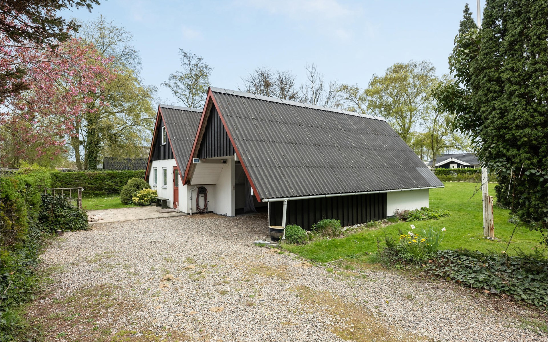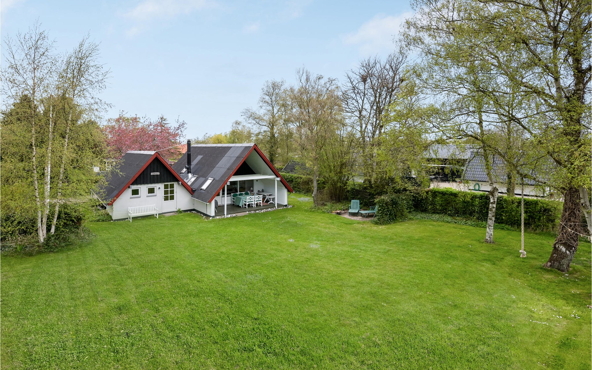 Die große überdachte Terrasse bietet einen geschützten Sitzplatz und lädt zum Grillen ein. Genießen Sie hier schöne Stunden im Freien und lange Sommerabende, während Ihre Kinder sich im großen Garten vergnügen, der viel Platz zum Toben und Ballspiel bietet.