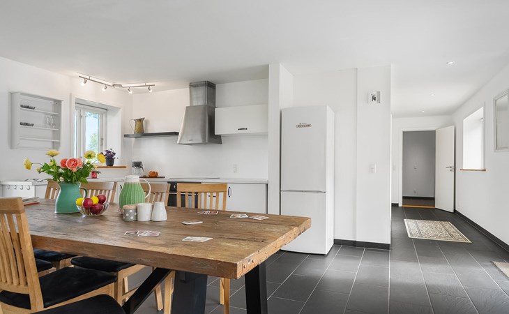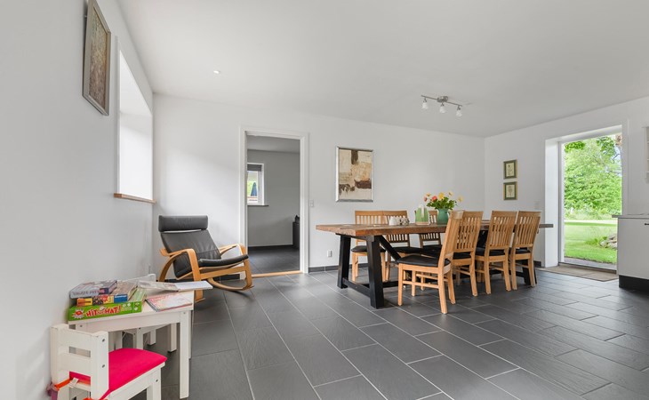 Dieses freundliche und mit modernen Annehmlichkeiten ausgestattete Ferienhaus begrüßt Sie, eingebettet in ein großes Naturgrundstück, und verspricht harmonische Erlebnisse mit Ihren Liebsten. Zaubern Sie in der offenen Küche Ihre Lieblingsgerichte, planen Sie Ihre Unternehmungen am einladenden Esstisch, widmen Sie sich einem gemütlichen Spieleabend oder streamen Sie einen guten Film mit der ganzen Familie.