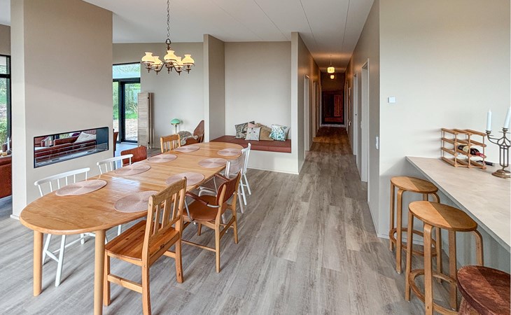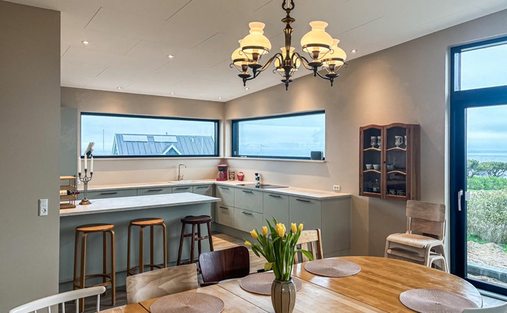 Ihr stilvolles Ferienhaus liegt nur einen kurzen Spaziergang vom Strand entfernt und bietet Ihnen eine Vielzahl an Freizeit- und Erholungsmöglichkeiten. Freuen Sie sich auf ein helles, offen gestaltetes Raumkonzept mit großen Fensterflächen und hochwertiger Einrichtung. Machen Sie es sich im großzügigen Wohnbereich bequem, schauen Sie einen guten Film oder lassen Sie einfach mal die Seele baumeln. Kochen Sie gemeinsam in der offenen Küche mit Kochinsel und lassen Sie den Abend am langen Esstisch bei einem Glas Wein ausklingen. Im Innenbereich erwartet Sie außerdem ein eigener Aktivitätsraum.
