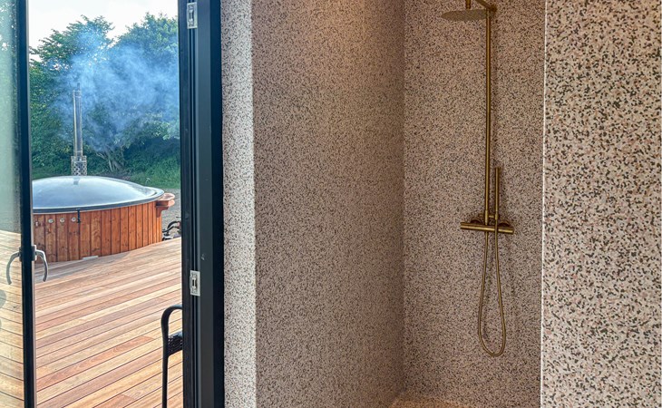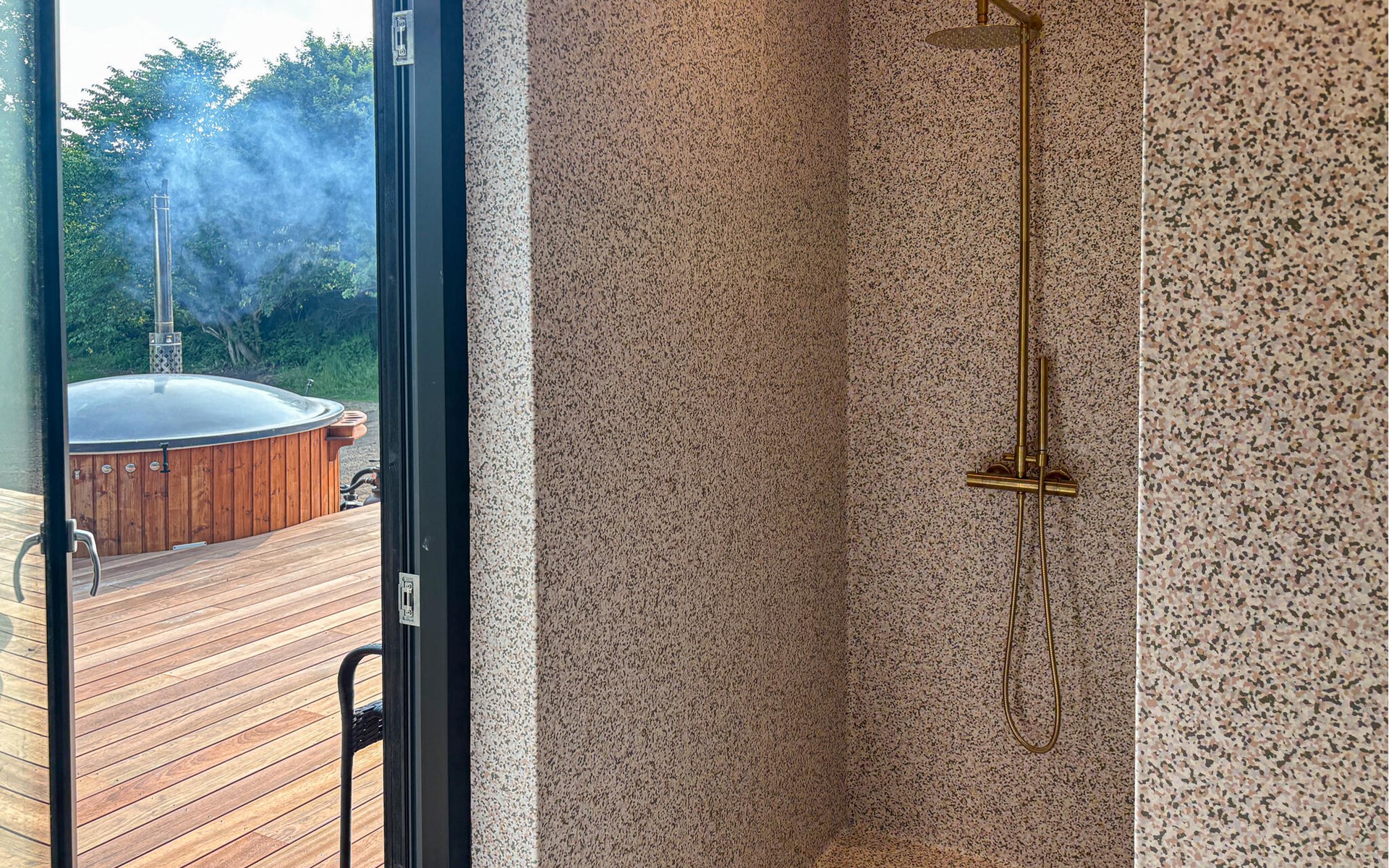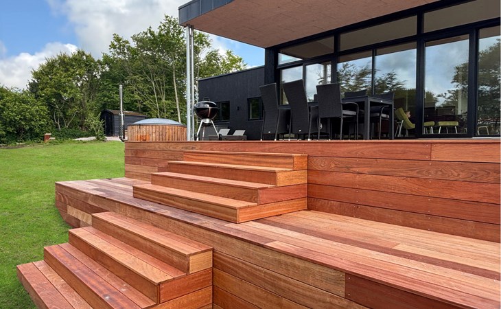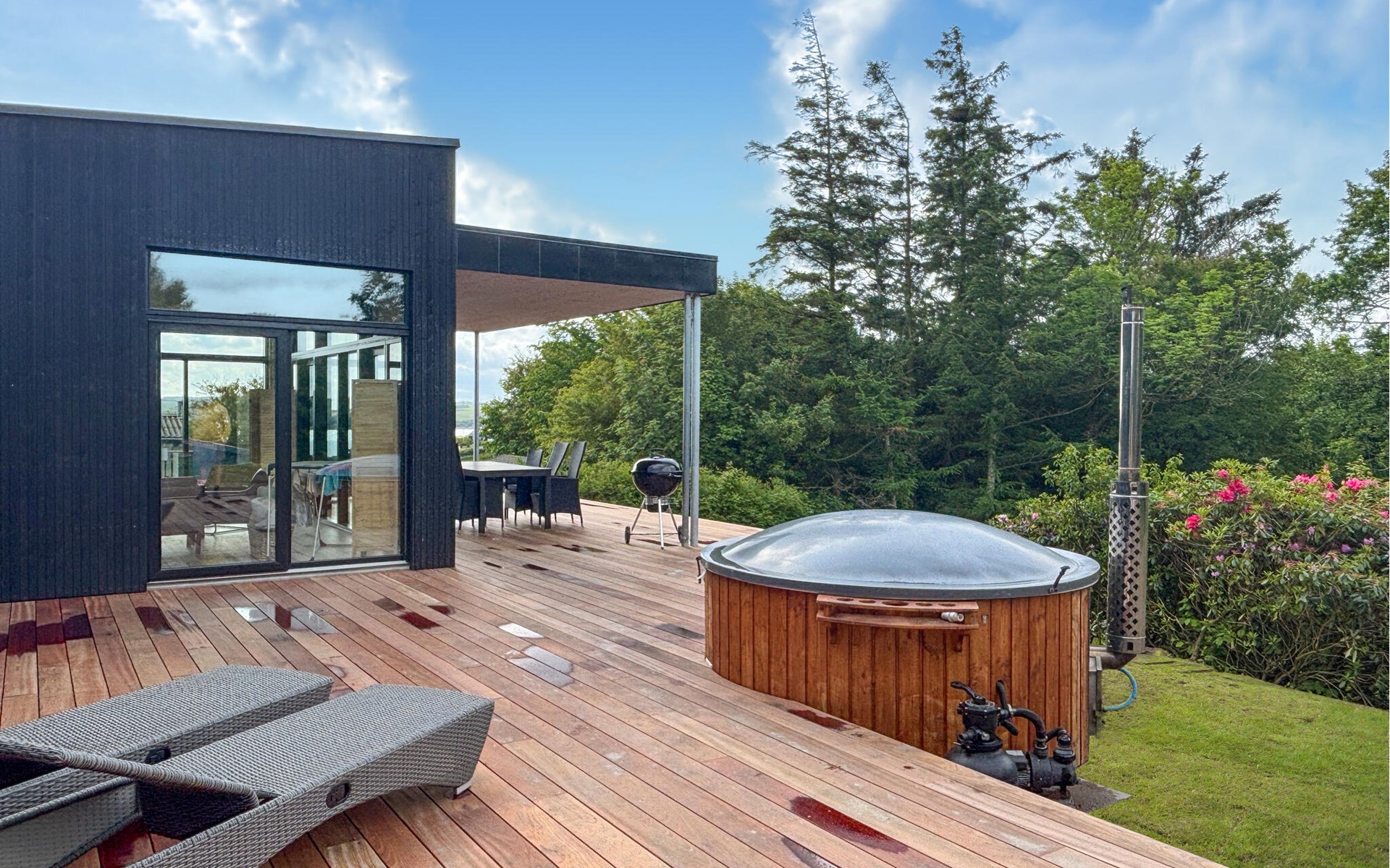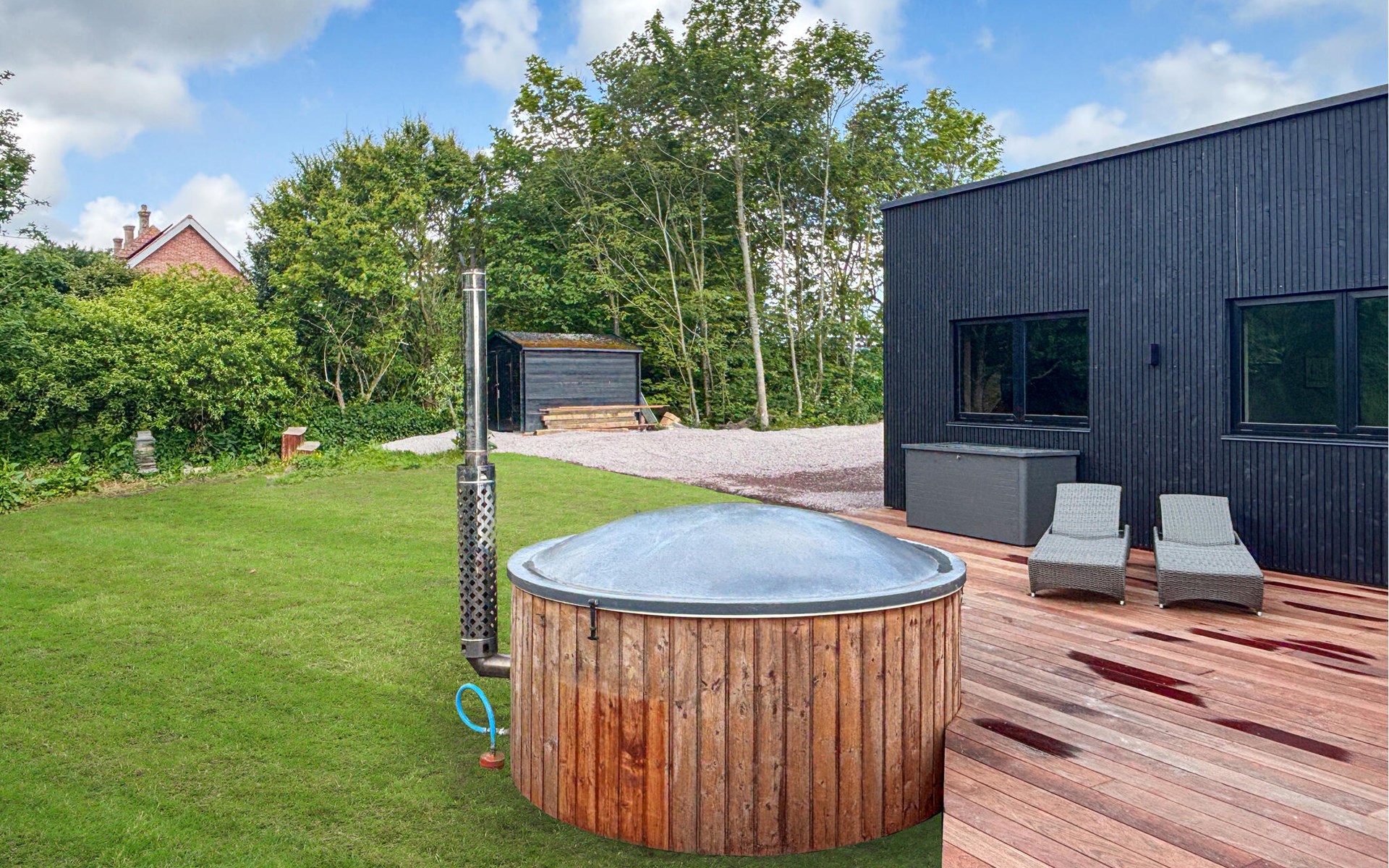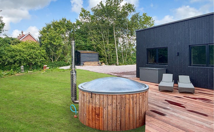 Genießen Sie Sie nach einem aktiven Tag ein Bad im Finnischen Holzbad auf der geschützten Terrasse.