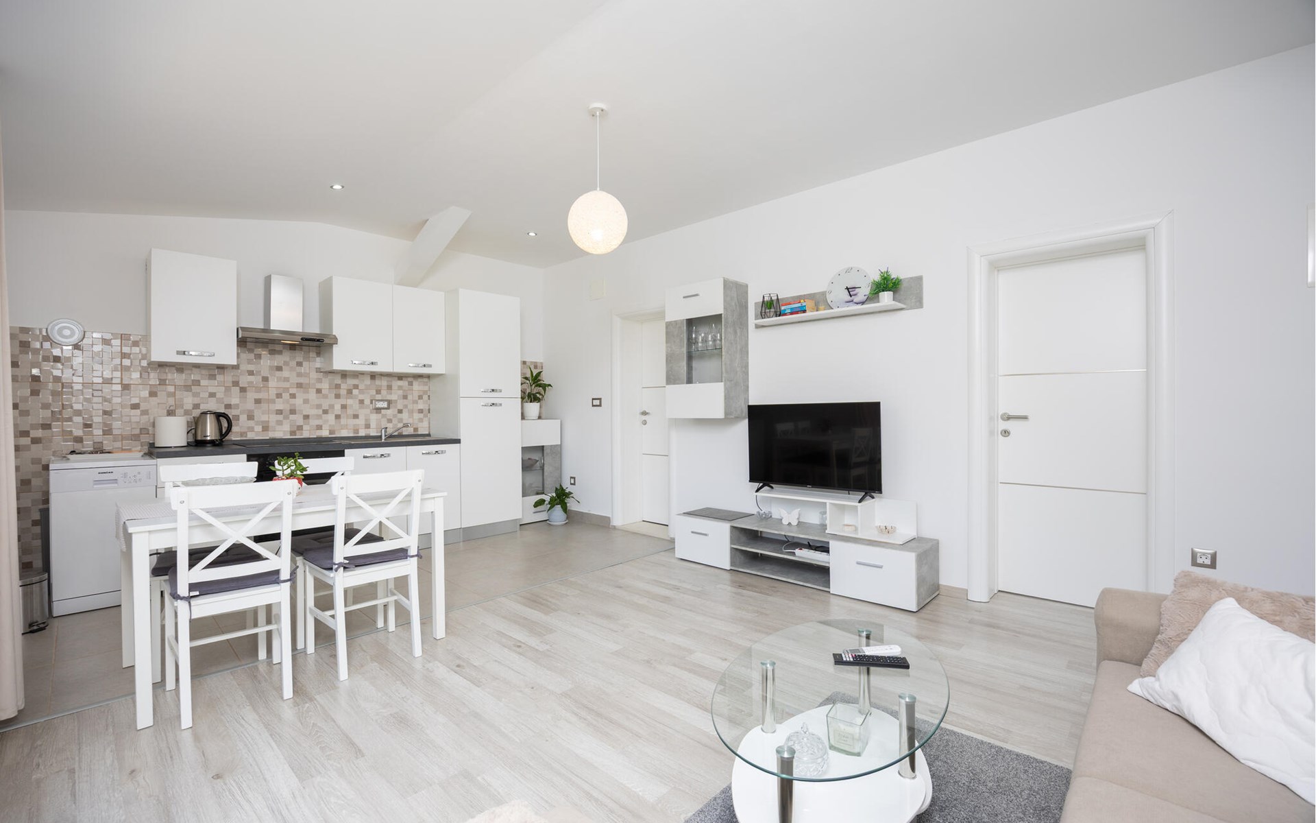 In dieser einladenden Wohnung werden Sie sich schnell wie zu Hause fühlen. Dezente Farben schaffen eine ruhige Atmosphäre, während ein bequemes Sofa zu gemütlichen Stunden bei einer Tasse Kaffee einlädt. Egal ob Sie Ihre Lieblingsmusik hören oder gemeinsam kochen, hier bestimmen Sie das Tempo Ihres Tages.